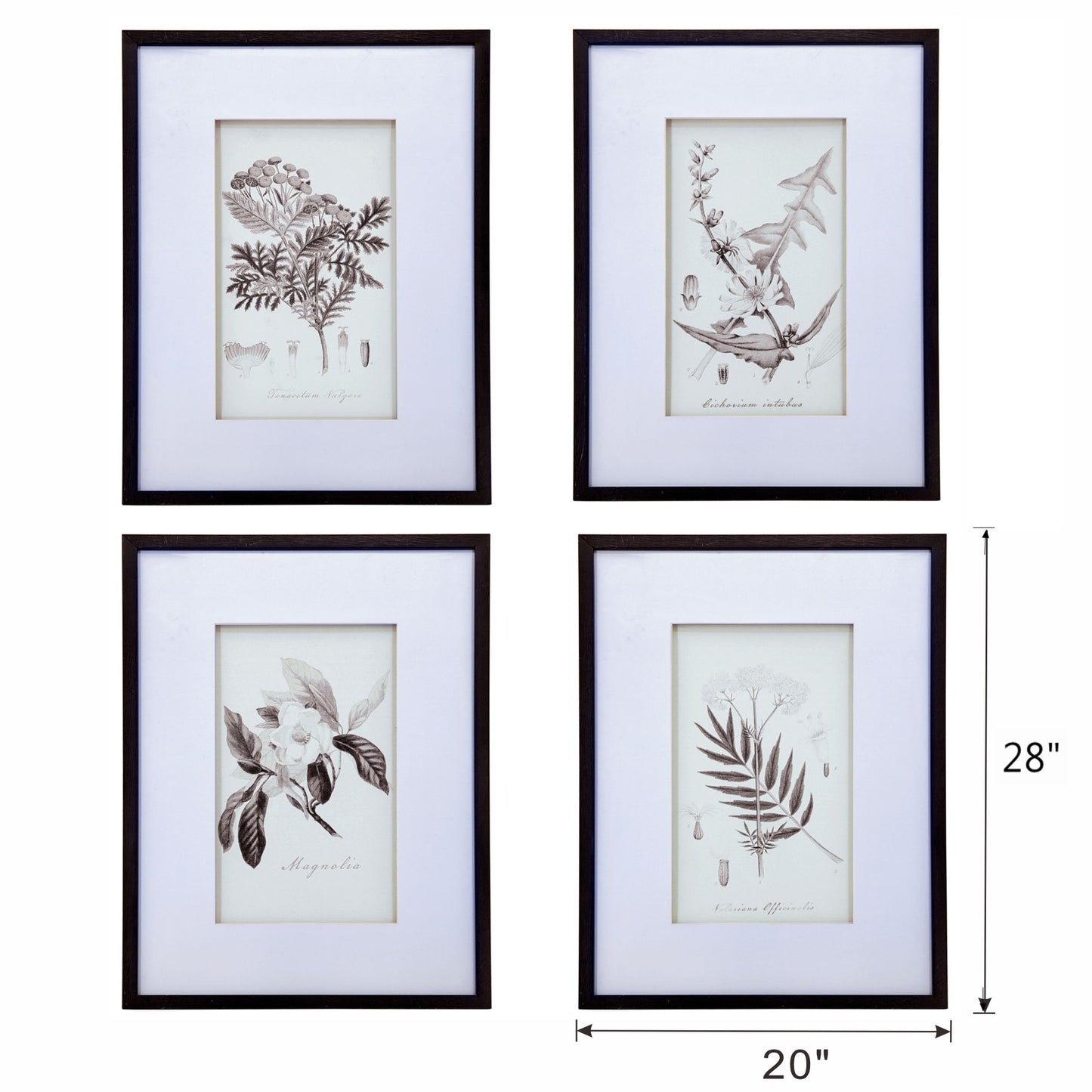 Botanical Wall Art Prints, Home Decor For Living Room Dining Room, Bedroom, Hallway (Set of 4) - White / Black