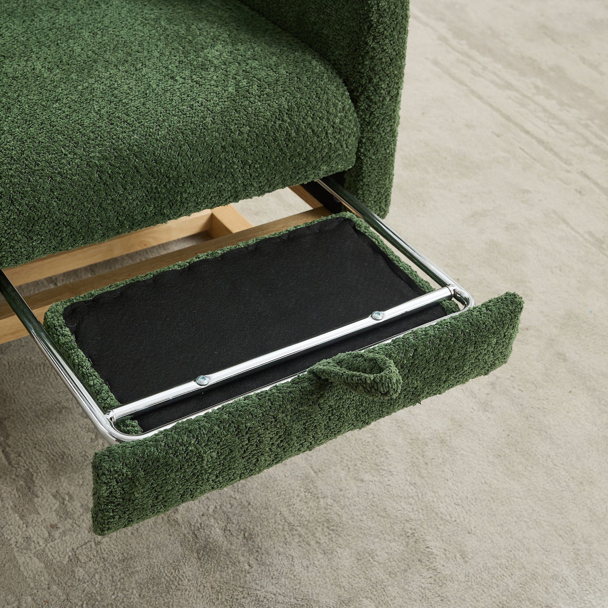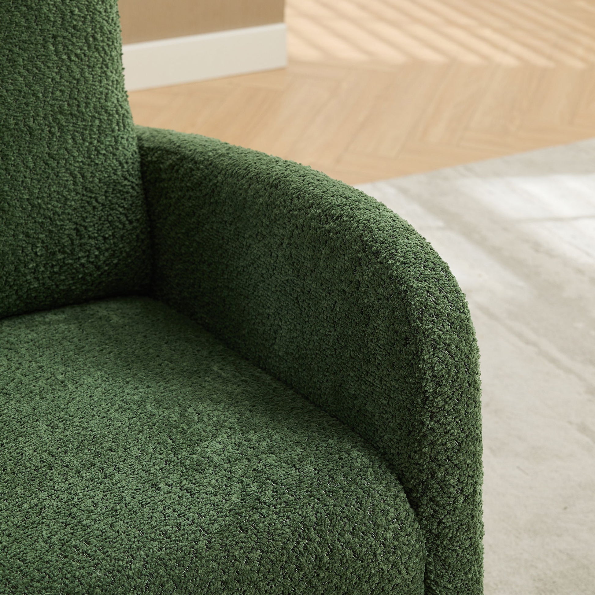 Boucle High Back Glider Rocking Chair With Retractable Footrest And Rubber Wood Legs For Nursery And Living Room - Green