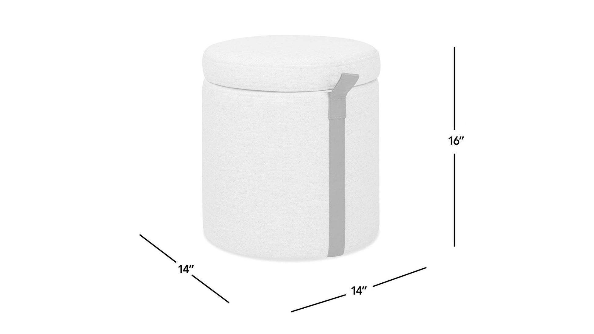 Brandy - Round Upholstered Storage Ottoman With Leather Accent - Flax White