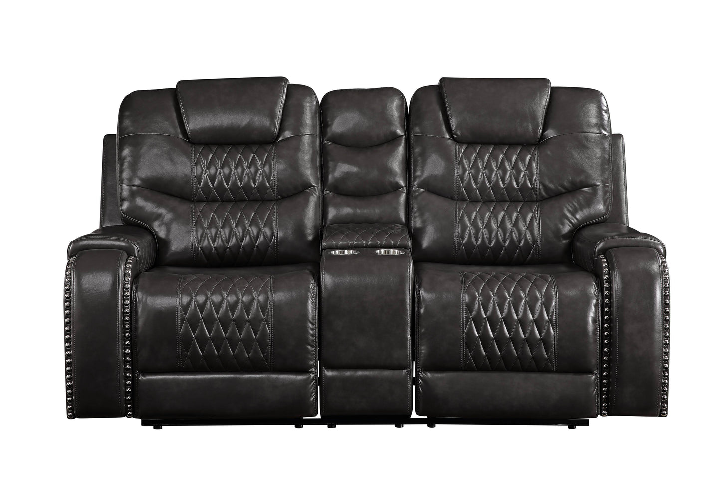 - Elegant Design: This motion loveseat features classic detailing with modern comfort, boasting diamond tufting and nailhead trim on the saddle-style armrests for a timeless, luxurious aesthetic.