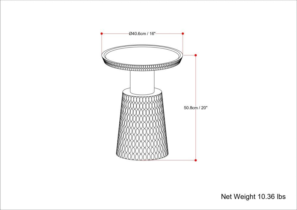 - Features spacious round tabletop, antique gold look stem and distinctive textured finish