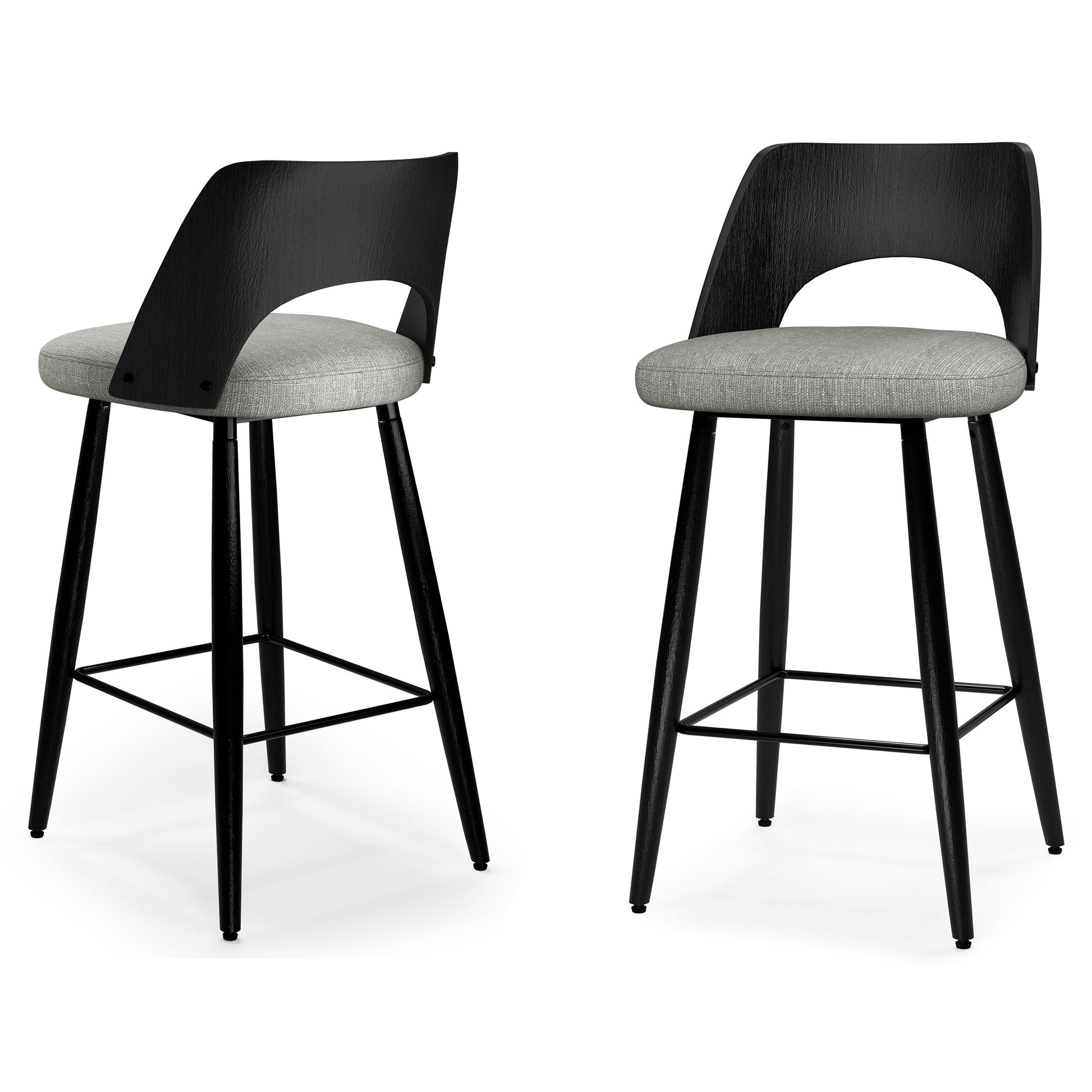 - Features Black Brushed Wood chair back, four sturdy legs with black powder coated metal foot rest and foam padded seat
