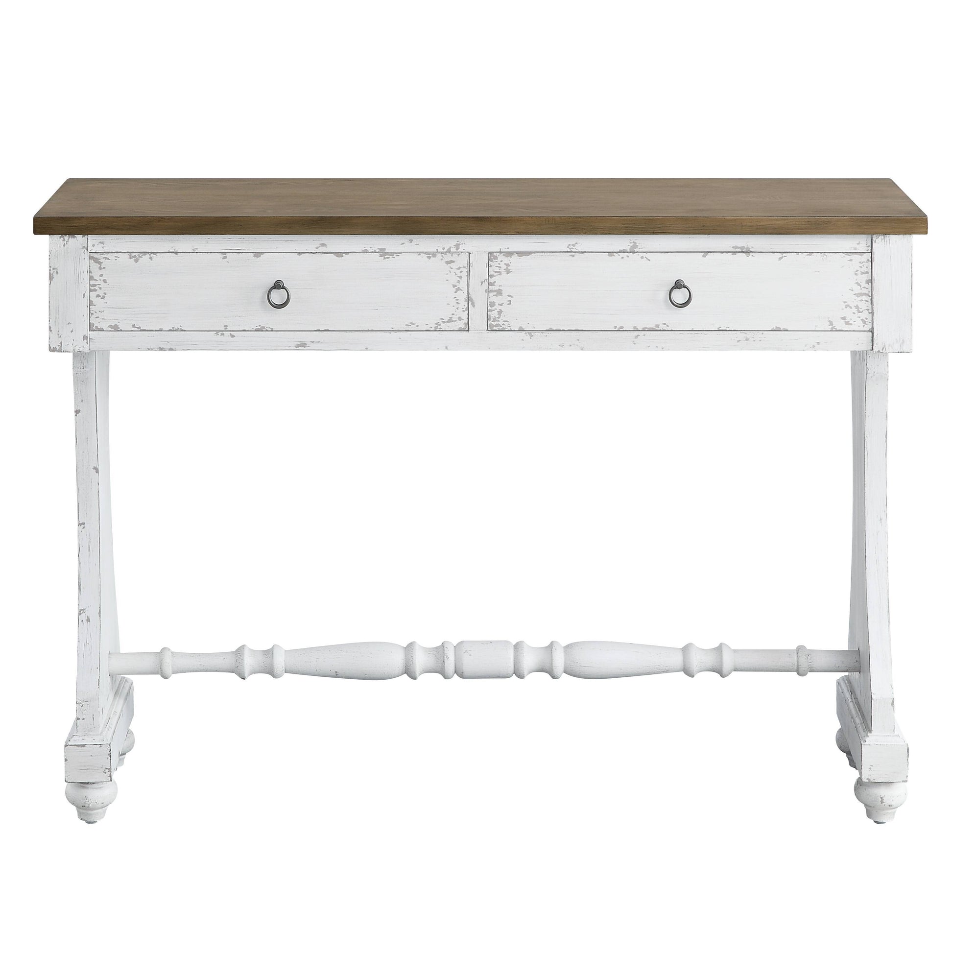 - Design and Functionality: The Carminda Antique White Finish Console Table offers a classic rectangular design with two storage drawers, providing a functional and stylish accent piece for any room.
