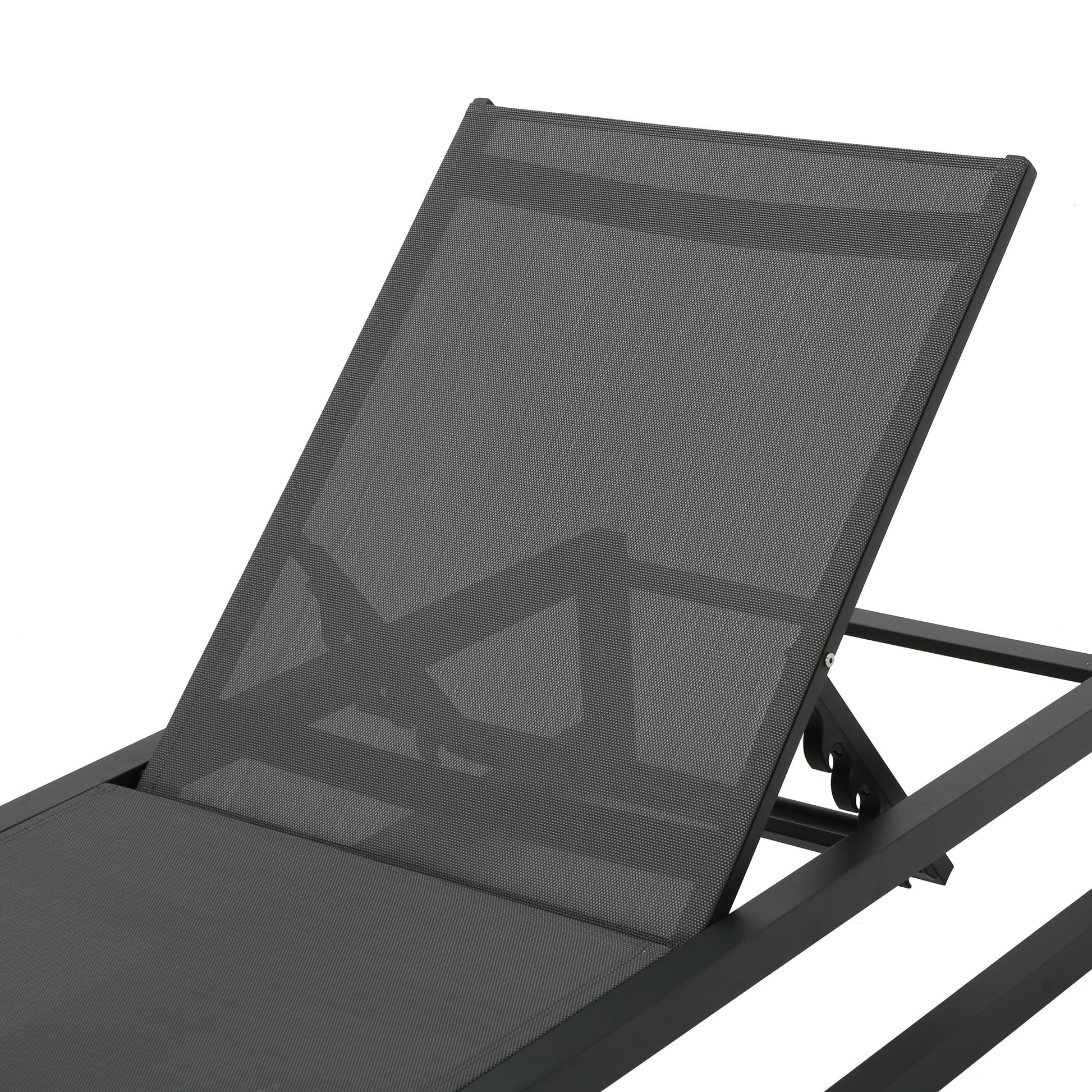 Chaise Lounge (Set of 2), Outdoor Patio Lounge Chairs With 5 Reclining Positions - Black / Gray