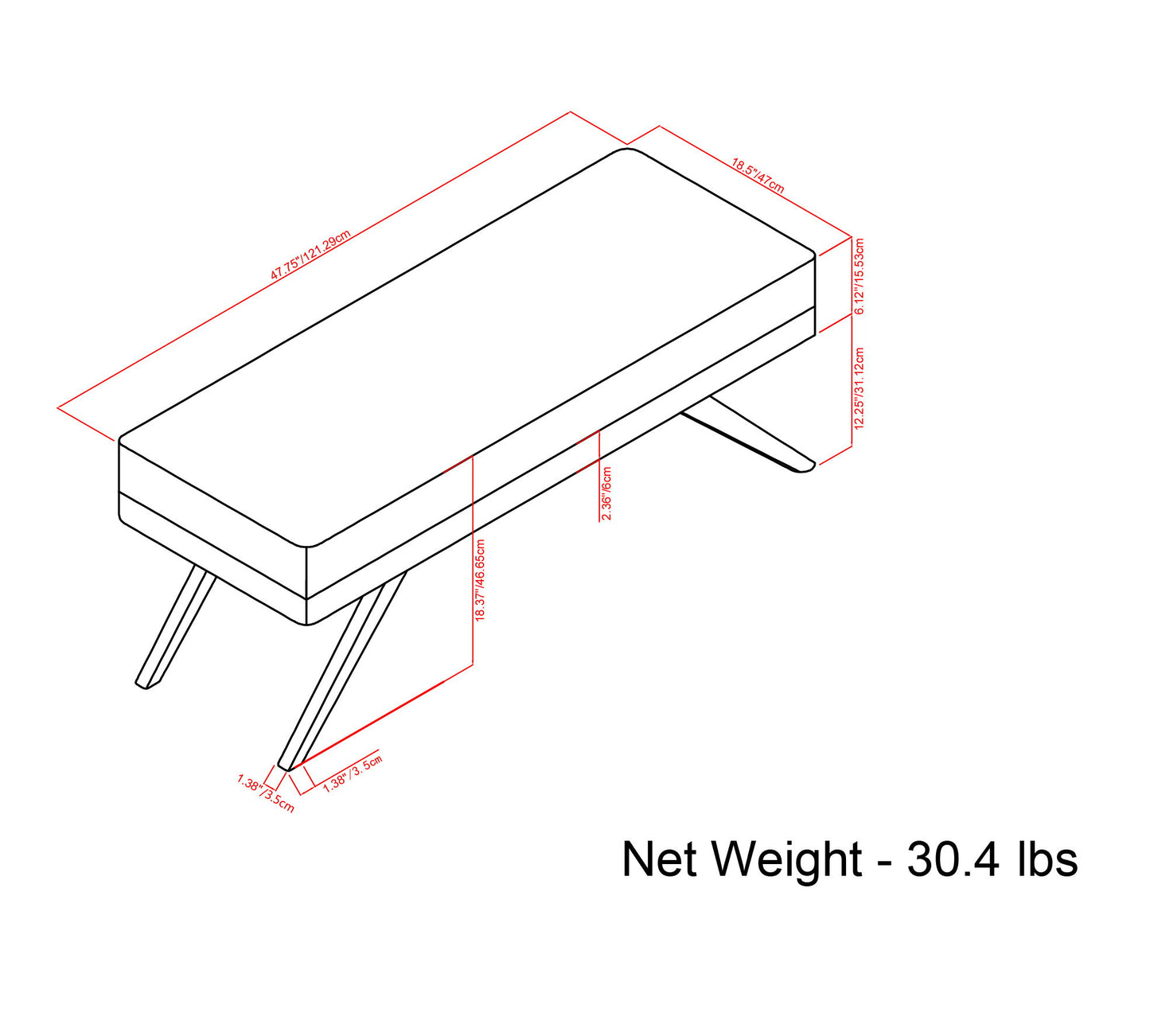 - Dimensions: 47.75"W x 18.5"D x 18.4"H