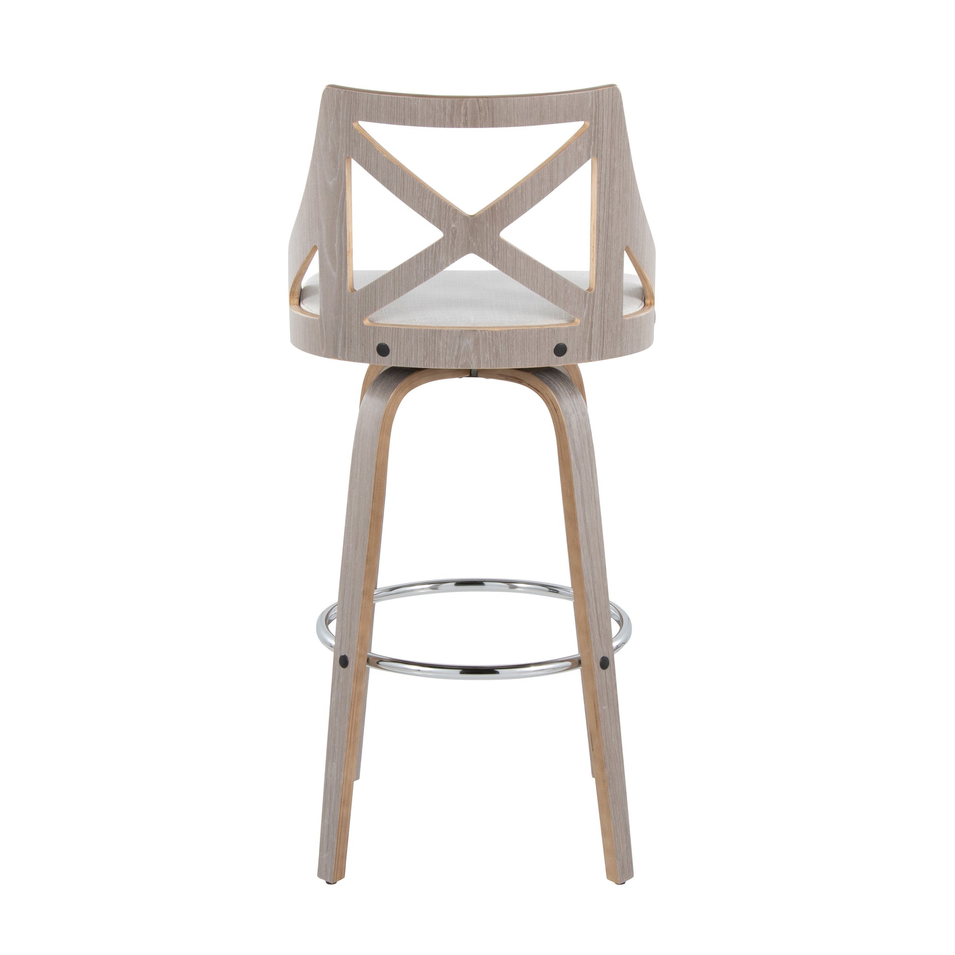 Charlotte - Farmhouse Fixed Height Barstool With Swivel With Round Footrest (Set of 2) - Light Gray / Cream