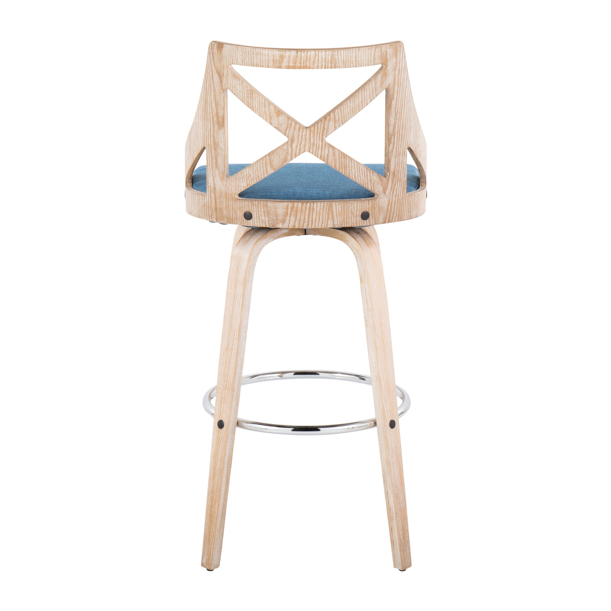 Charlotte - Farmhouse Fixed Height Counter Stool With Swivel And Round Footrest (Set of 2) - Blue / White Washed