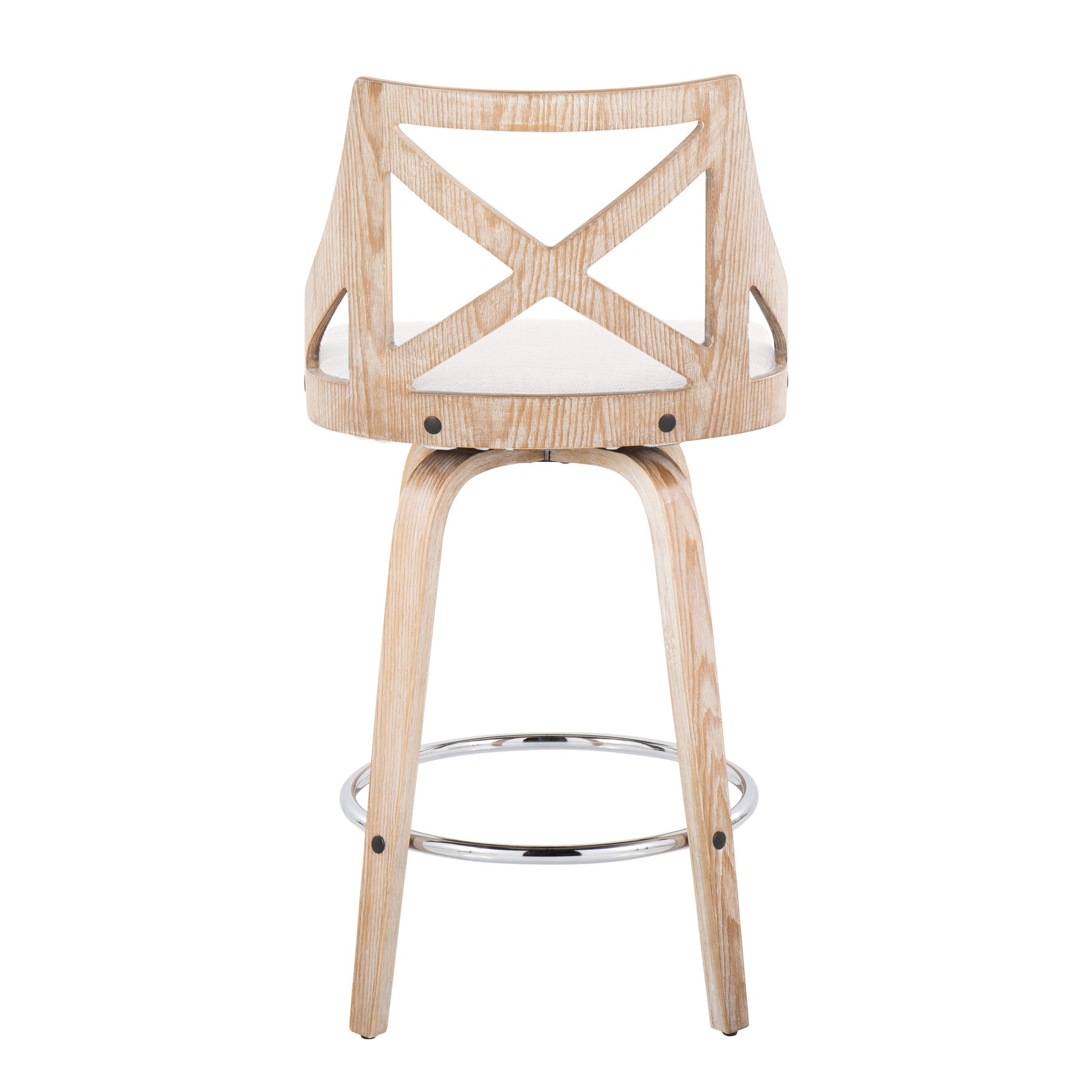 Charlotte - Farmhouse Fixed Height Counter Stool With Swivel Round Chrome Footrest (Set of 2) - White Washed / Cream