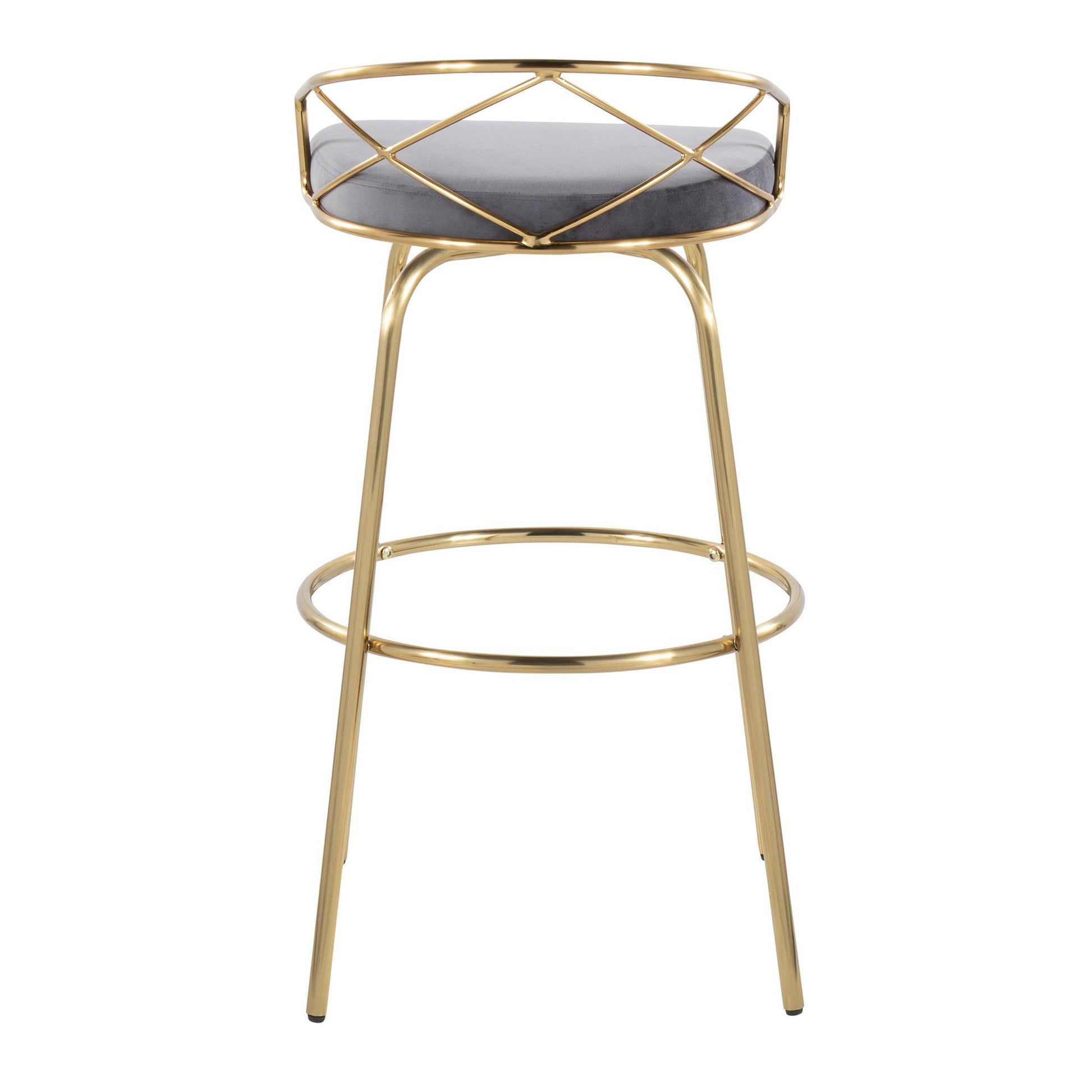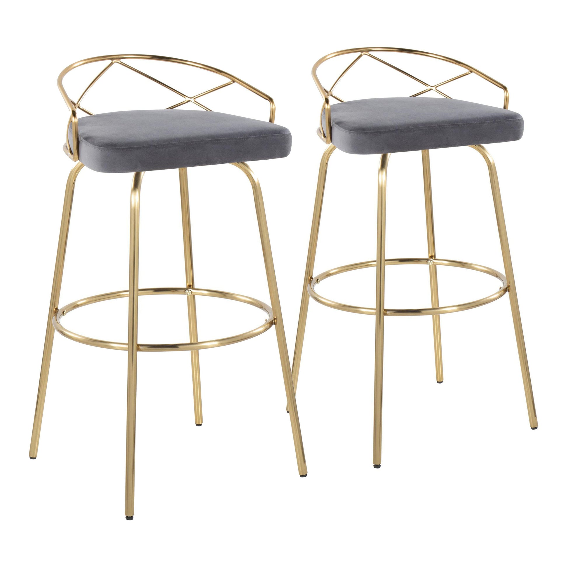 Charlotte - Glam Glam / Art Deco Fixed Height Barstool With Swivel With Round Footrest (Set of 2) - Gold / Gray