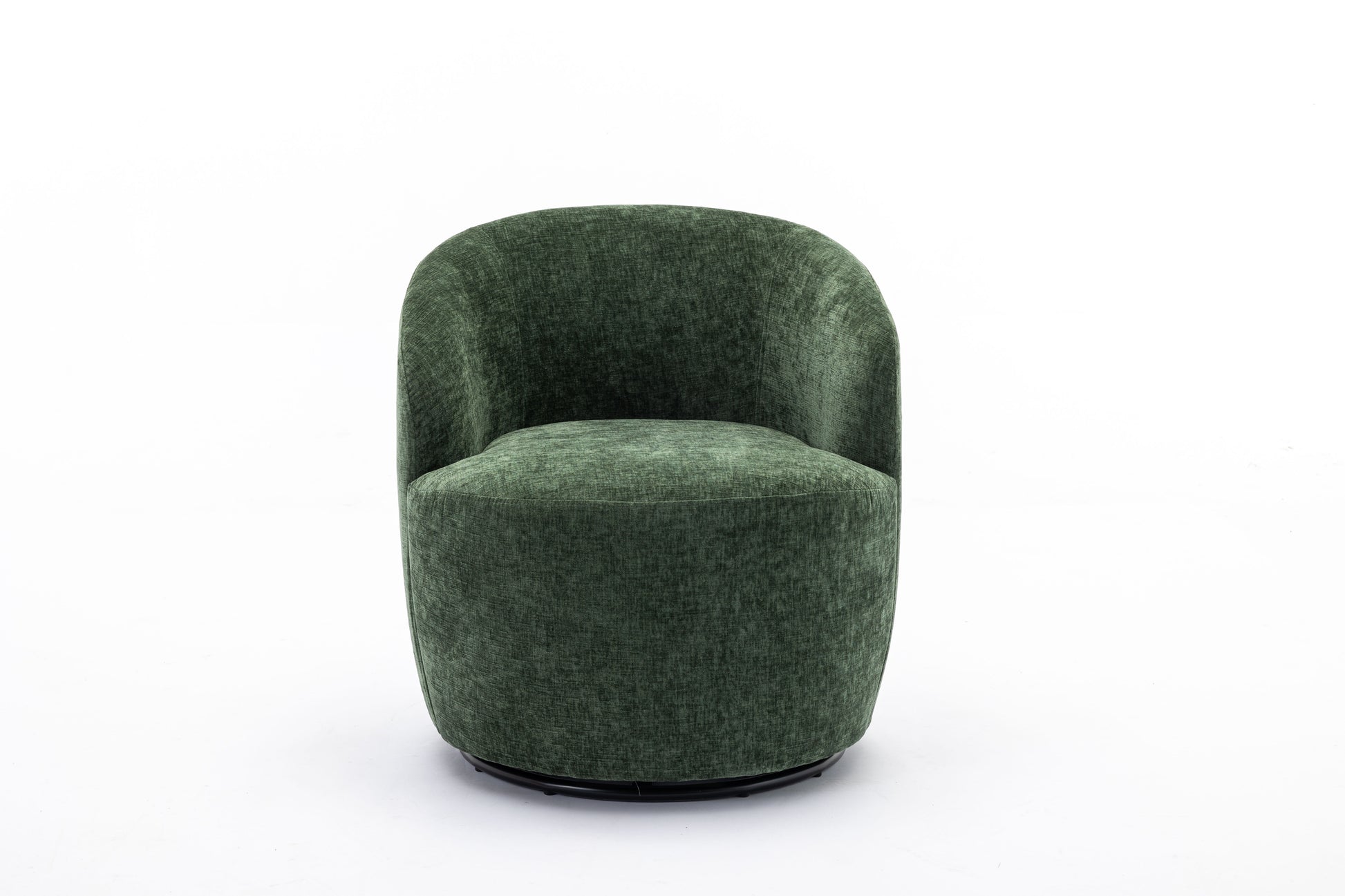Chenille Fabric Swivel Accent Armchair Barrel Chair With Black Powder Coating Metal Ring - Green