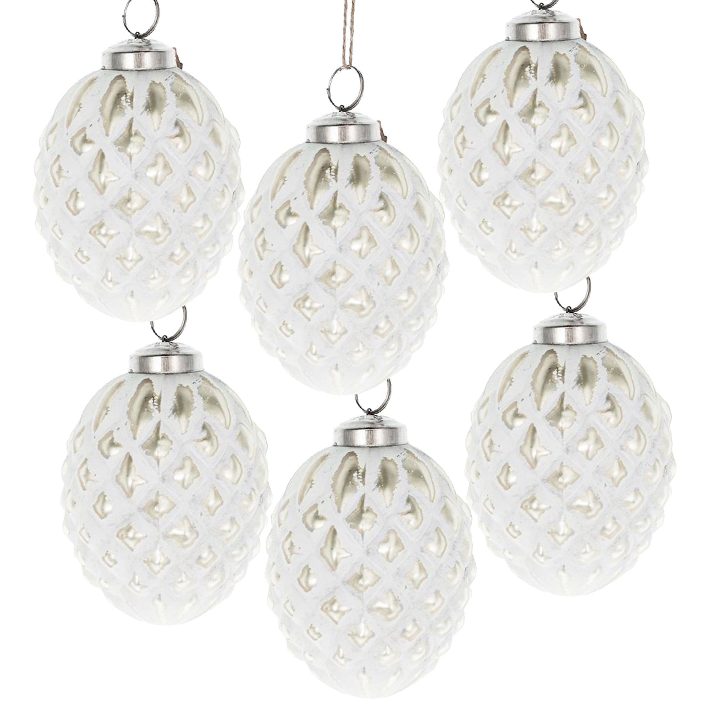Christmas Ball Ornaments, Glass Decorative Hanging Ball Christmas Tree Ornaments, For Holiday Party Decorations (Set of 6) - White