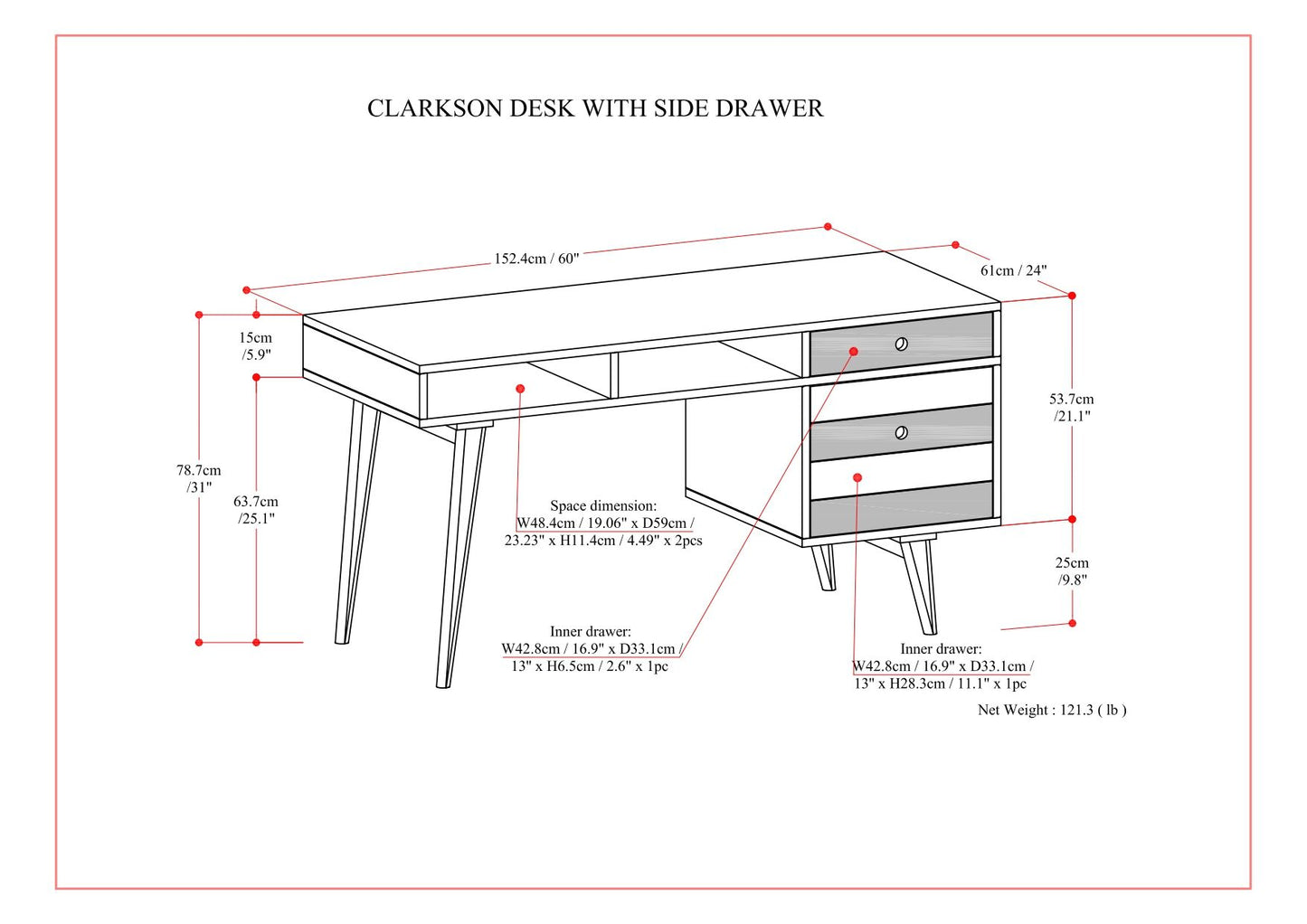 - Dimensions: 24" D x 60" W x 31" H