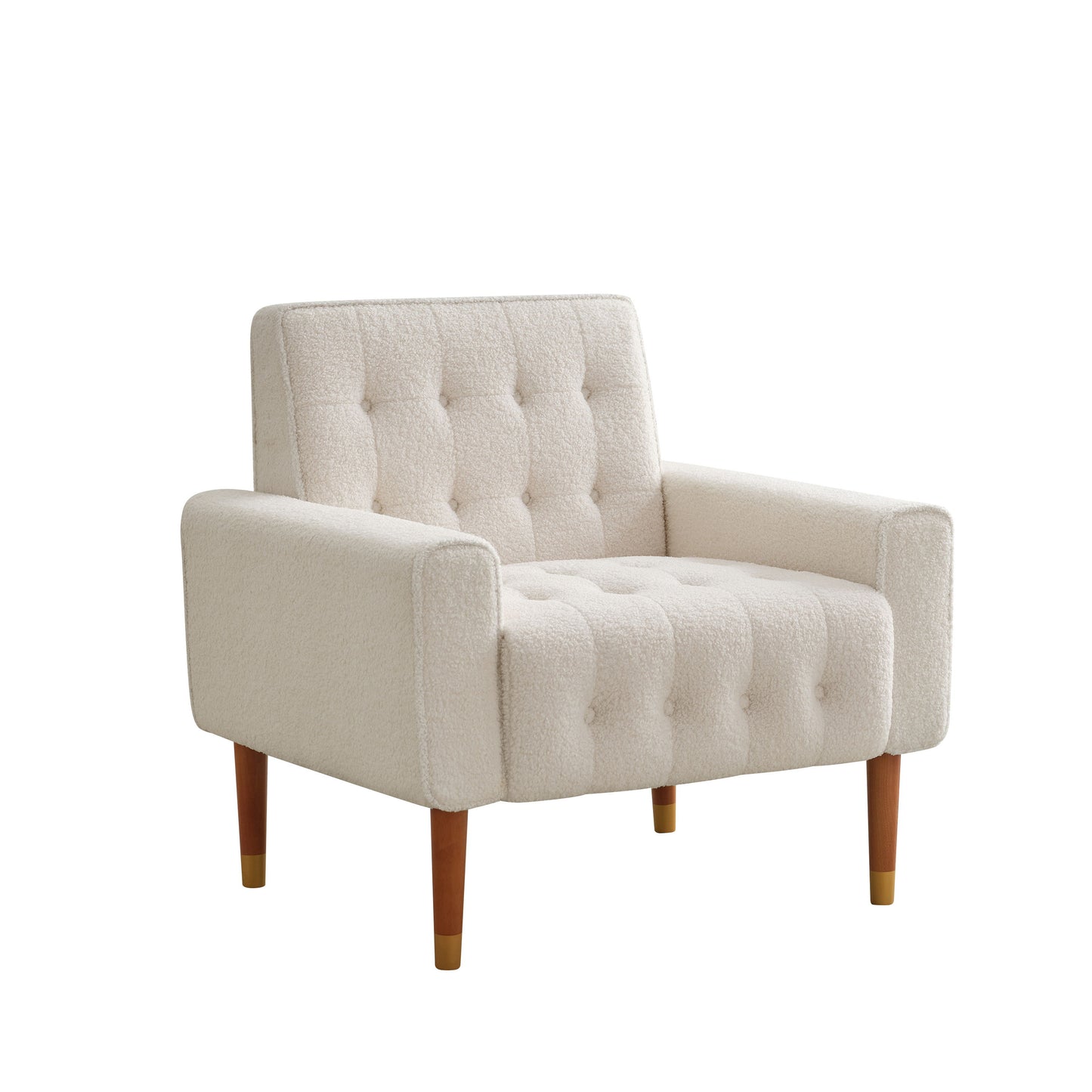 Classic Biscuit Style Accent Chair Comfortable Armrests, Soft Fabric, Elegant Solid Wood Legs With Gold Finish - Beige