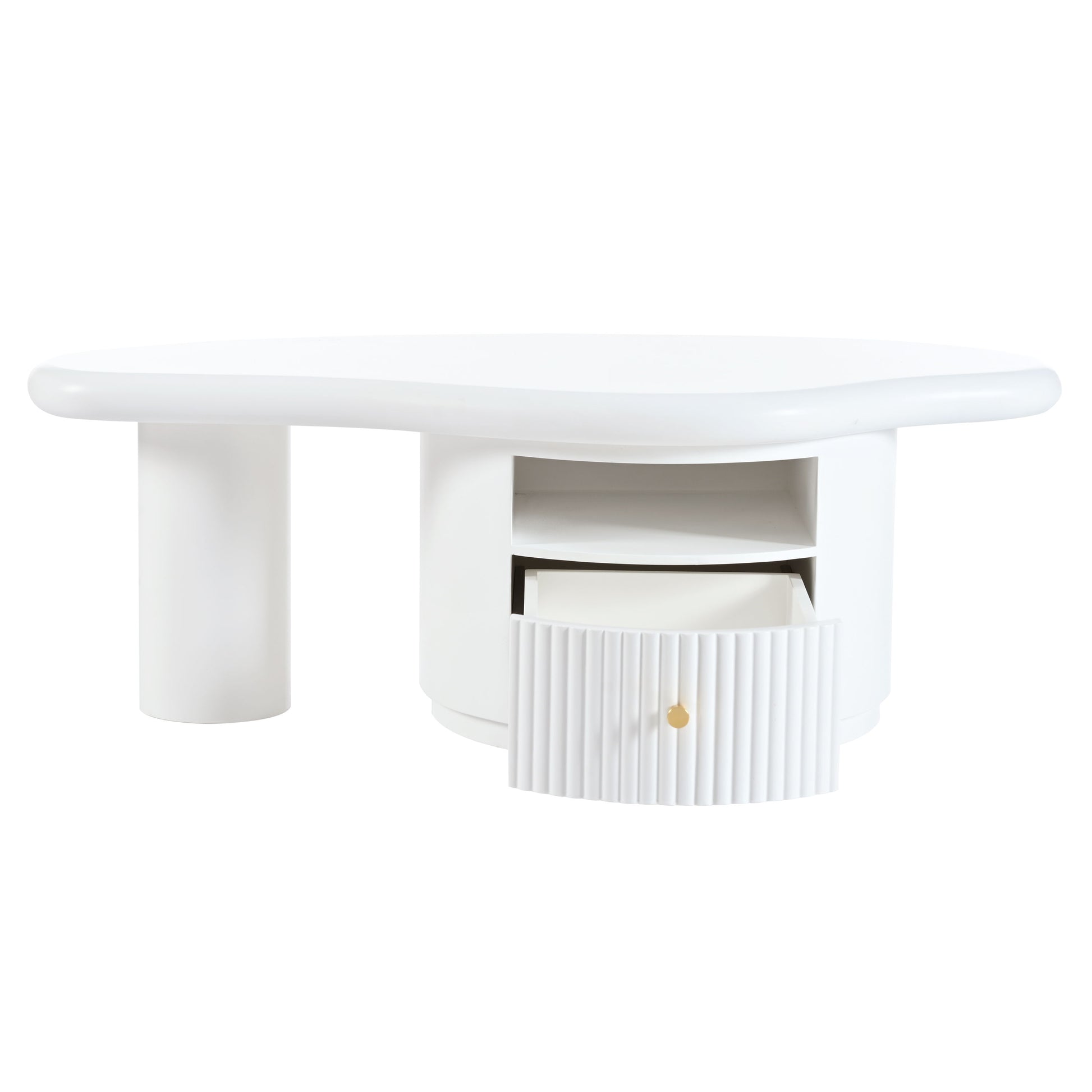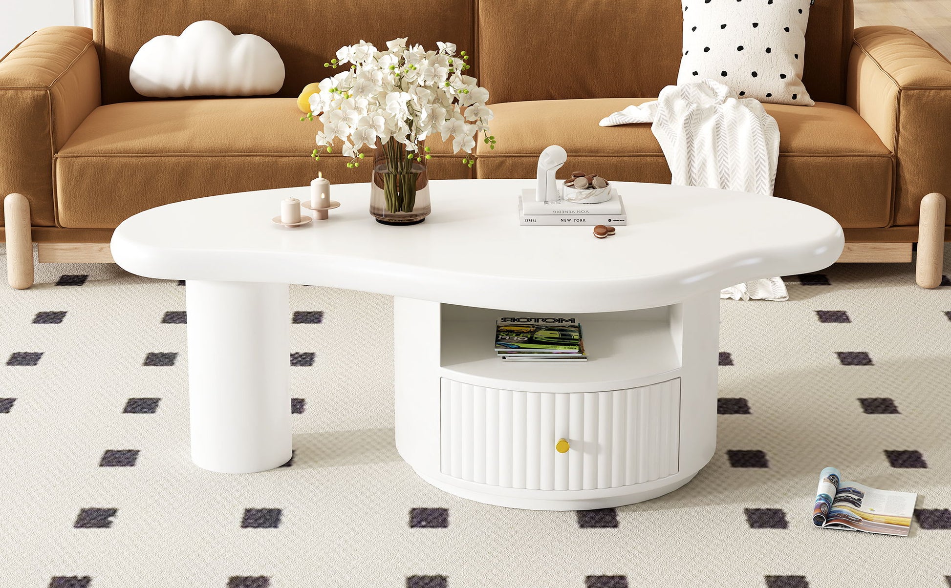 Cloud - Coffee Table, Irregular Shape Coffee Table With 1 Dreawer And Shelf For Living Room - White