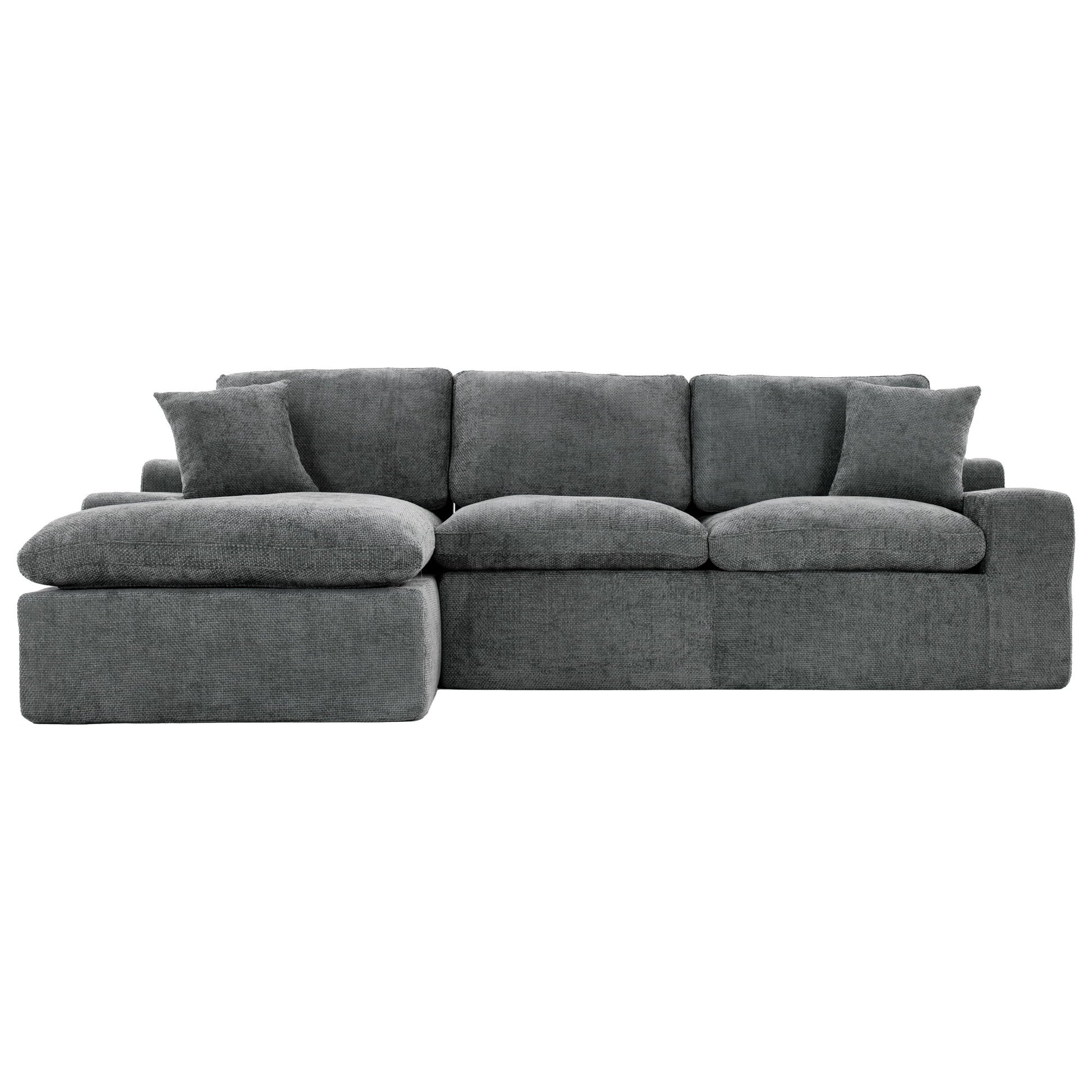 Cloud Sectional Sofa Upholstered Sofa Couch With Double-Layer Cushion And Side Pockets, Free Combined Sectional Sofa Full Compressed Sofa For Living Room - Gray