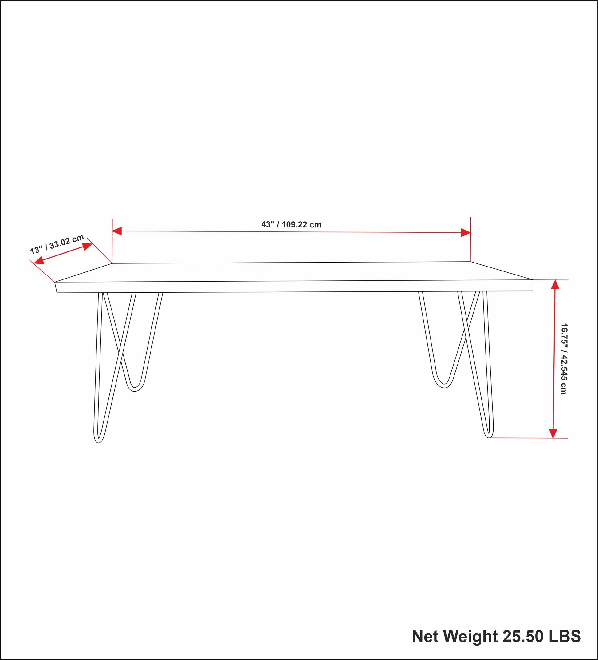 - Features sturdy raw edge bench seat and tapered black powdered coated hair pin metal legs