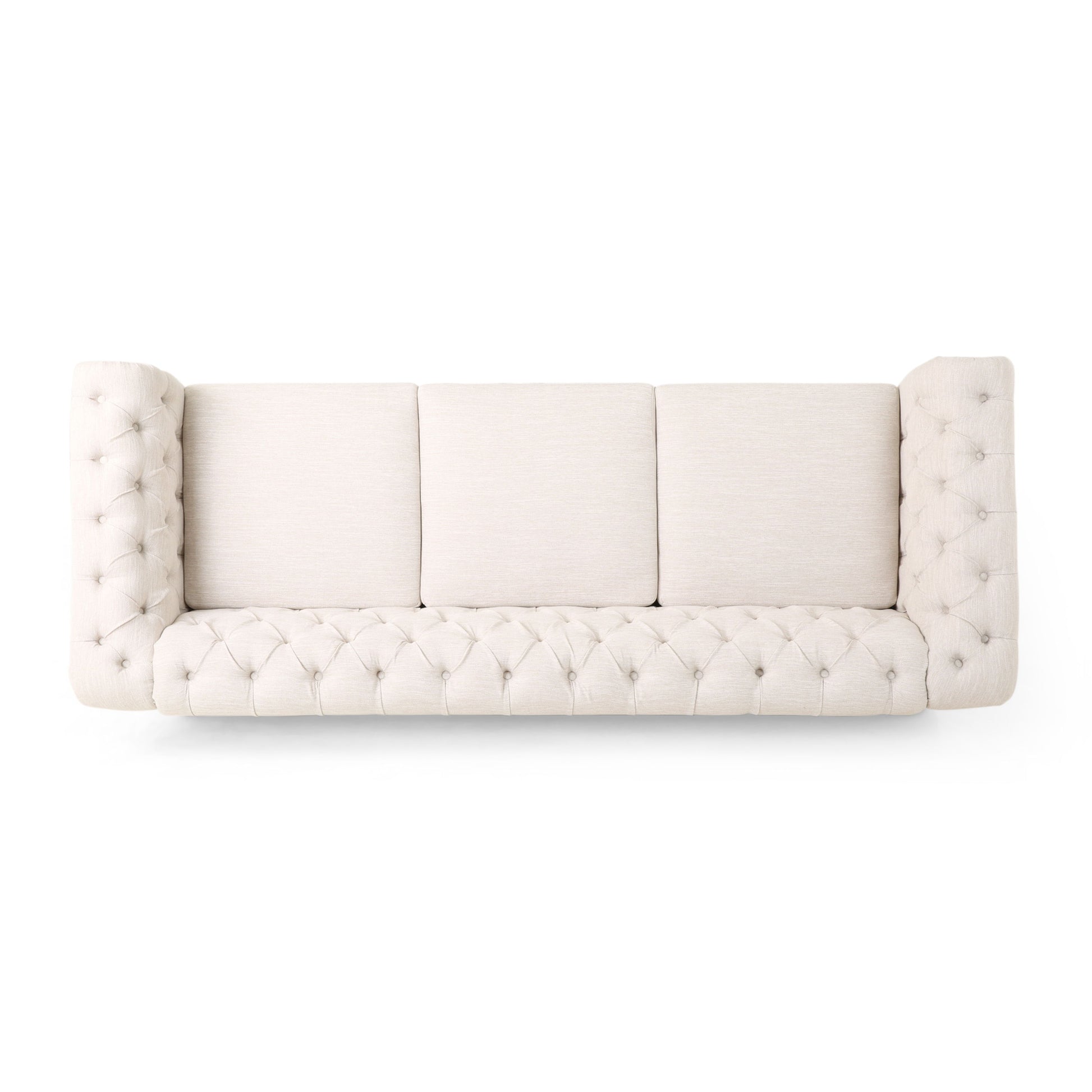Comfy 3 Seat Sofa With Wooden Legs, Retro Style For Living Room - Beige