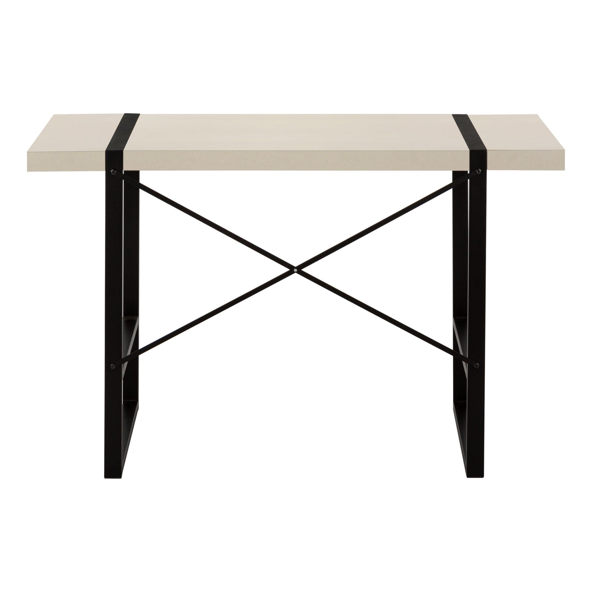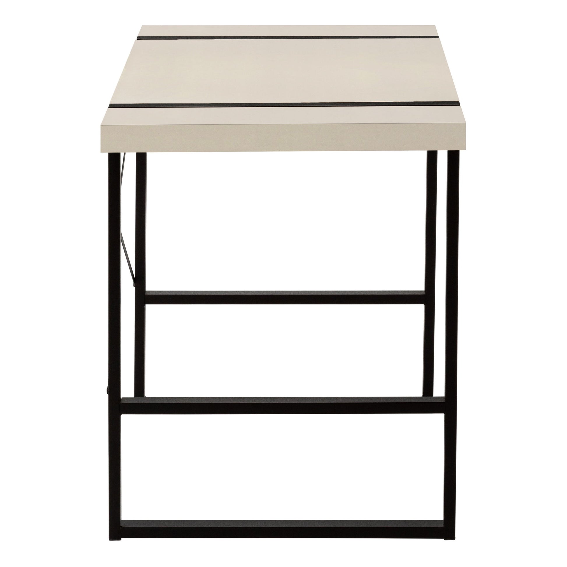 - Industrial Design: This computer desk features a thick-panel desktop with a modern taupe finish, complemented by robust metal legs in a black finish, providing an industrial yet stylish look.