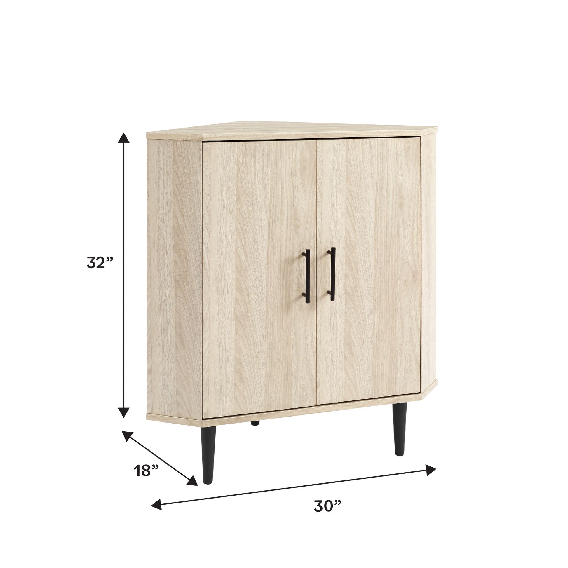 Contemporary 2 Door Mixed-Material Corner Accent Cabinet - Birch