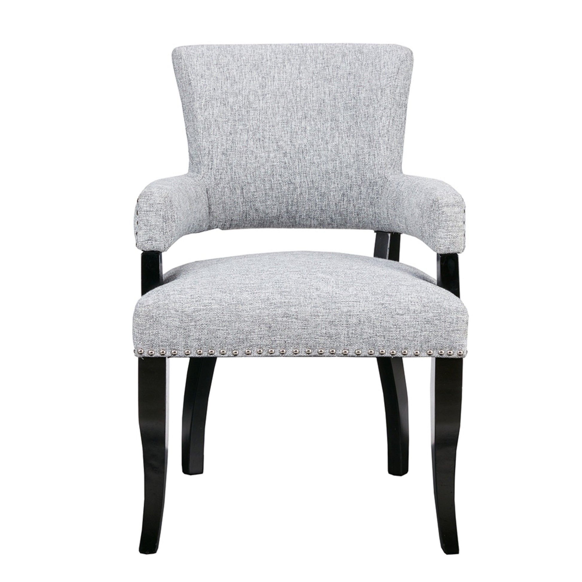 Contemporary Arm Dining Chair With Nailhead Trim - Gray / Black Noir