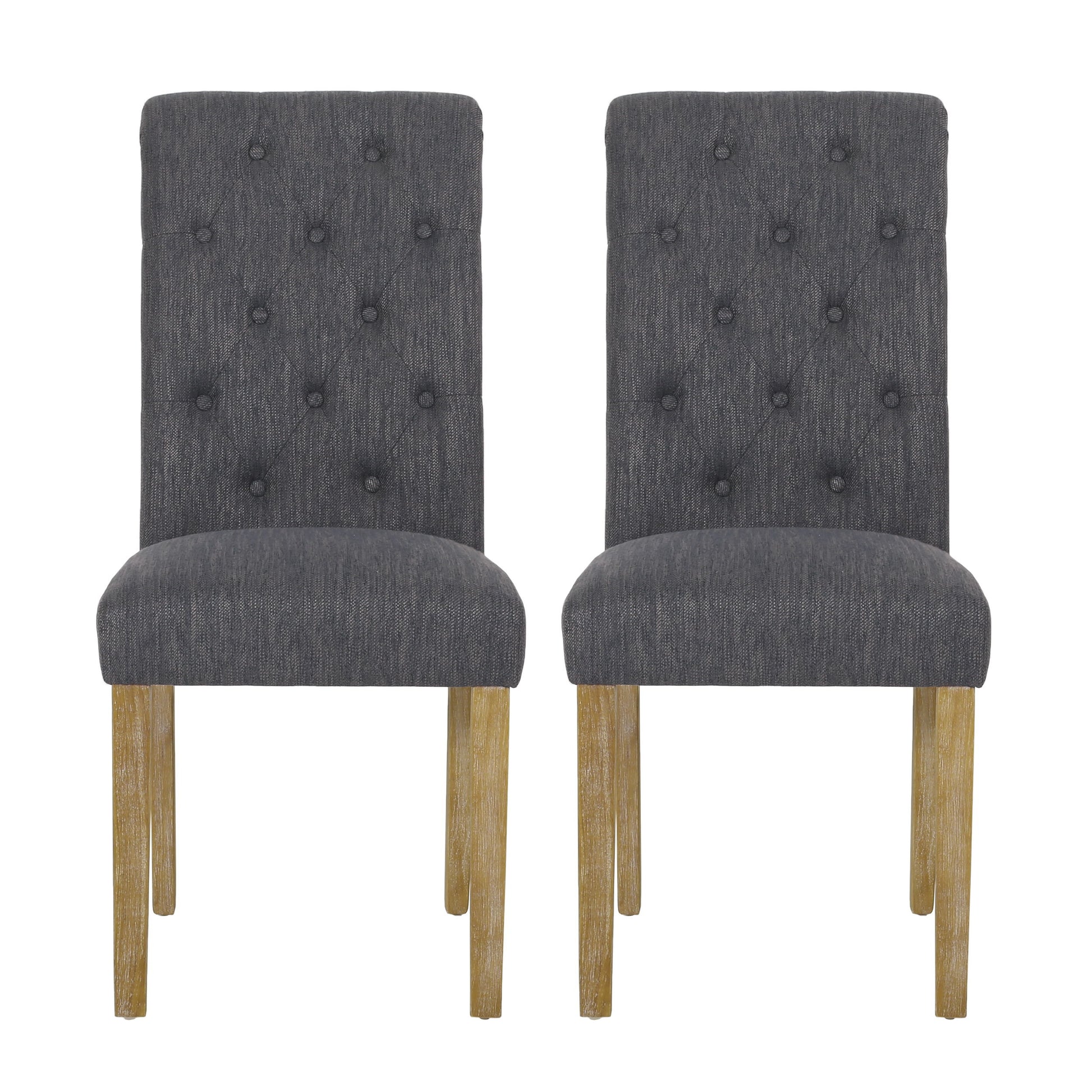 Contemporary Dining Chair (Set of 2) With Button Tufted Design - Charcoal