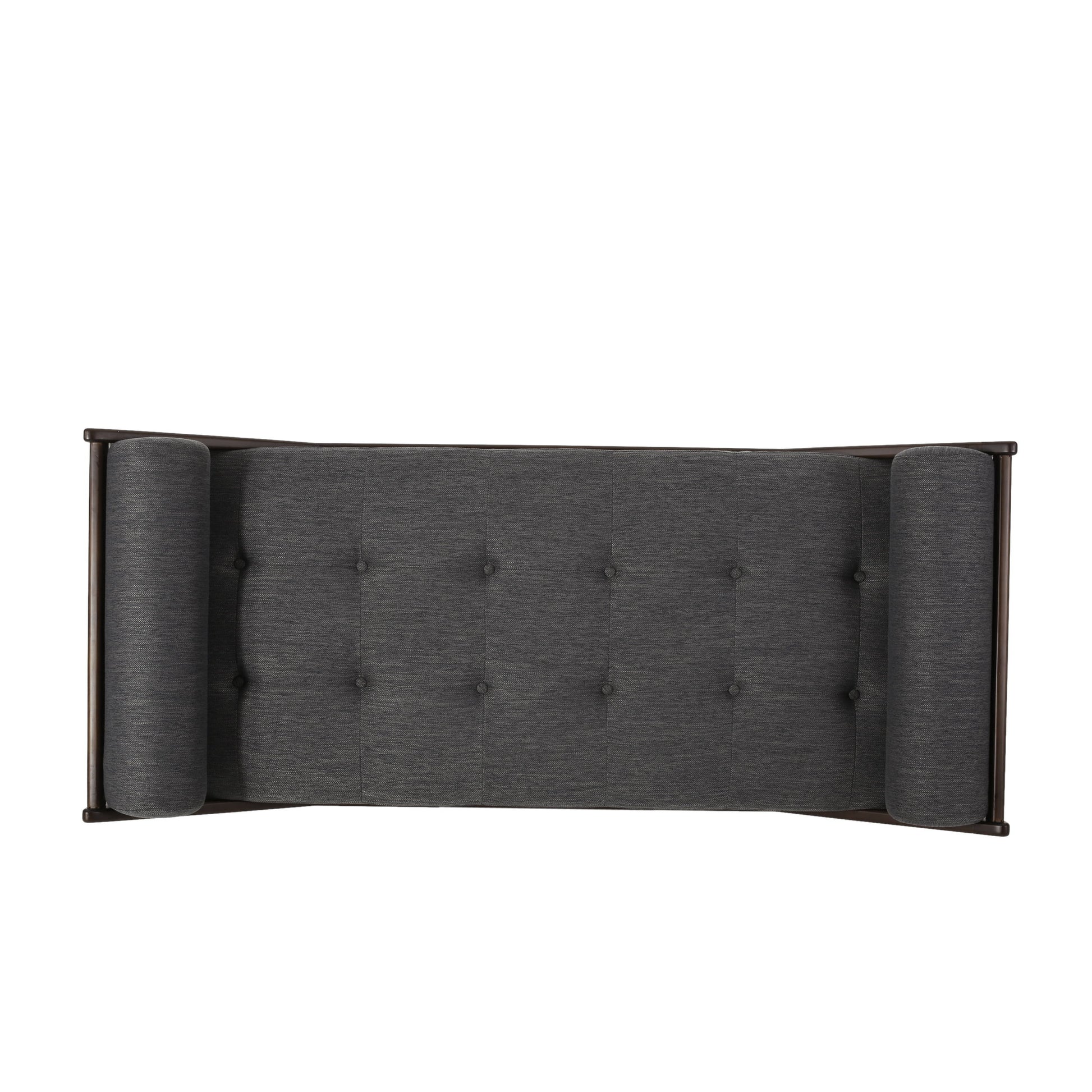 Contemporary Fabric Chaise Lounge With Button Tufted Waffle Stitching And Rolled Accent Pillows - Charcoal
