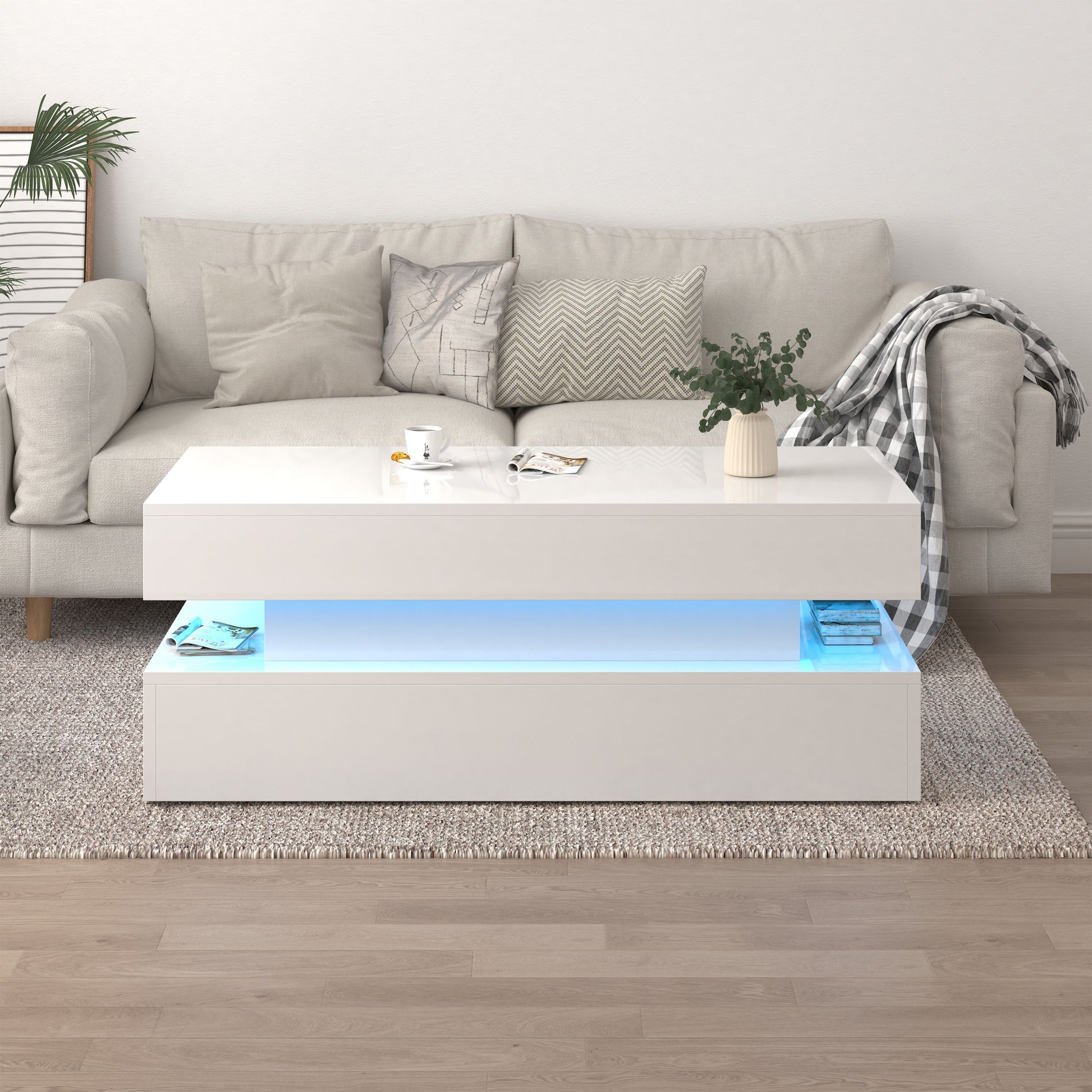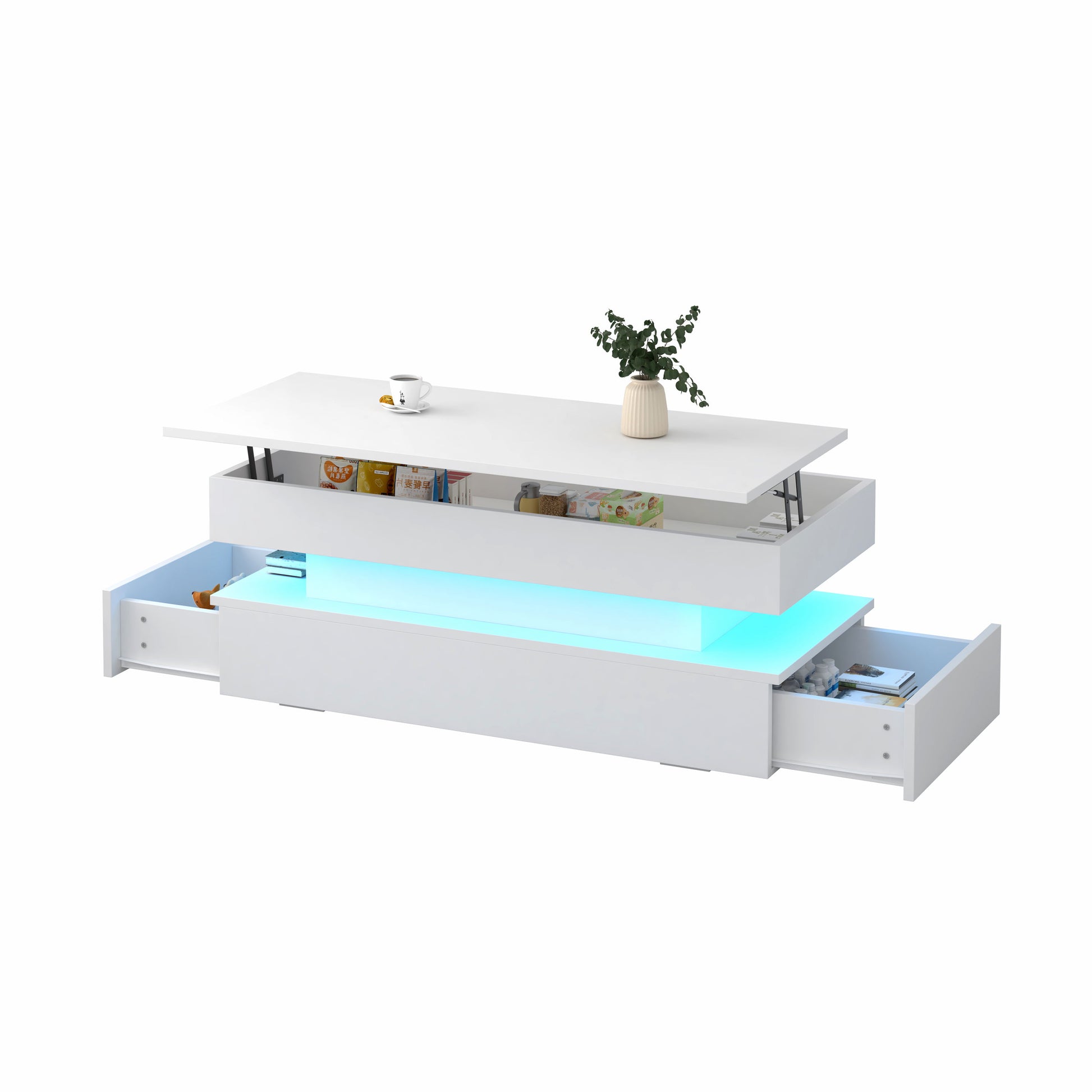 Contemporary Foldable Coffee Table With Drawers And LED White & Metal 3 Tier Design - White