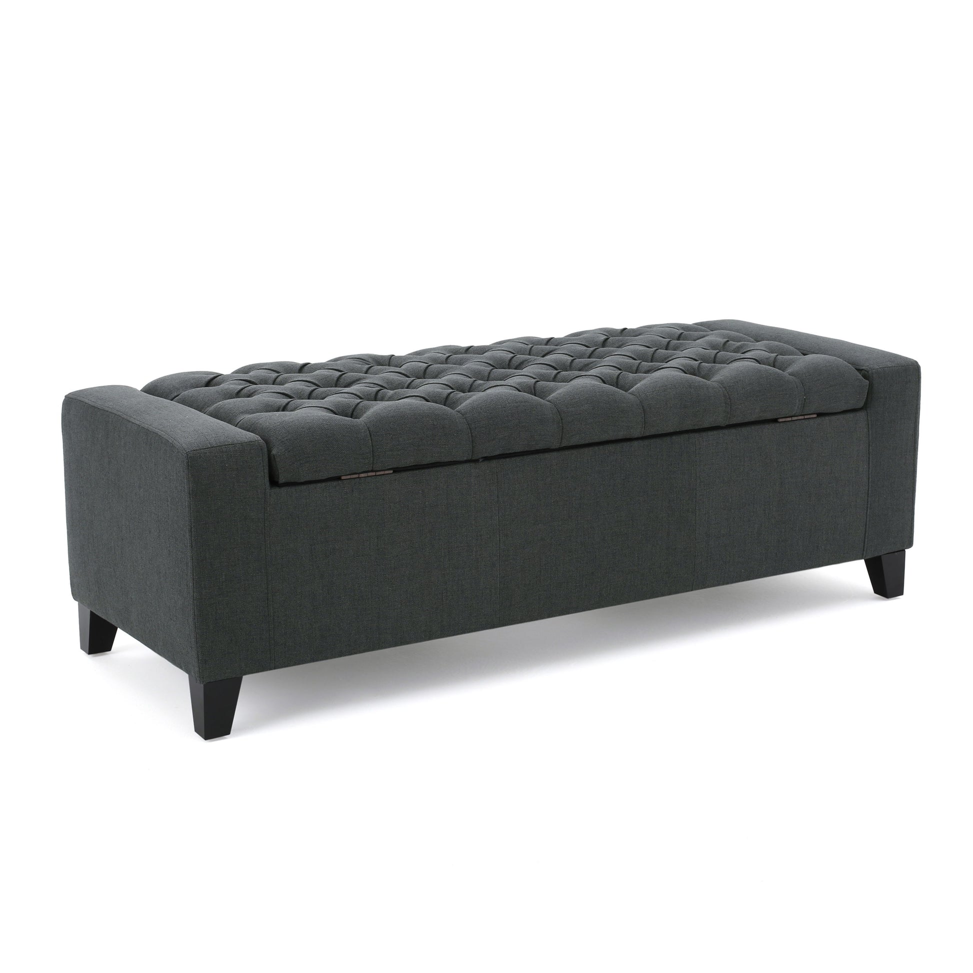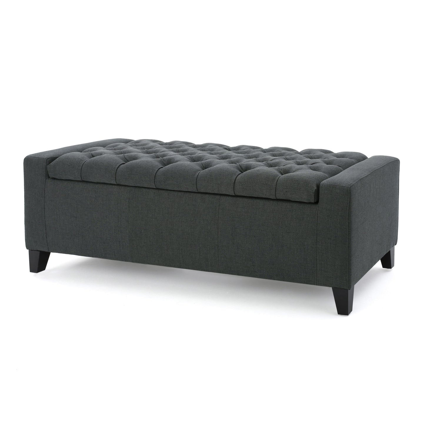 Contemporary Storage Ottoman With Tufted Top - Dark Gray