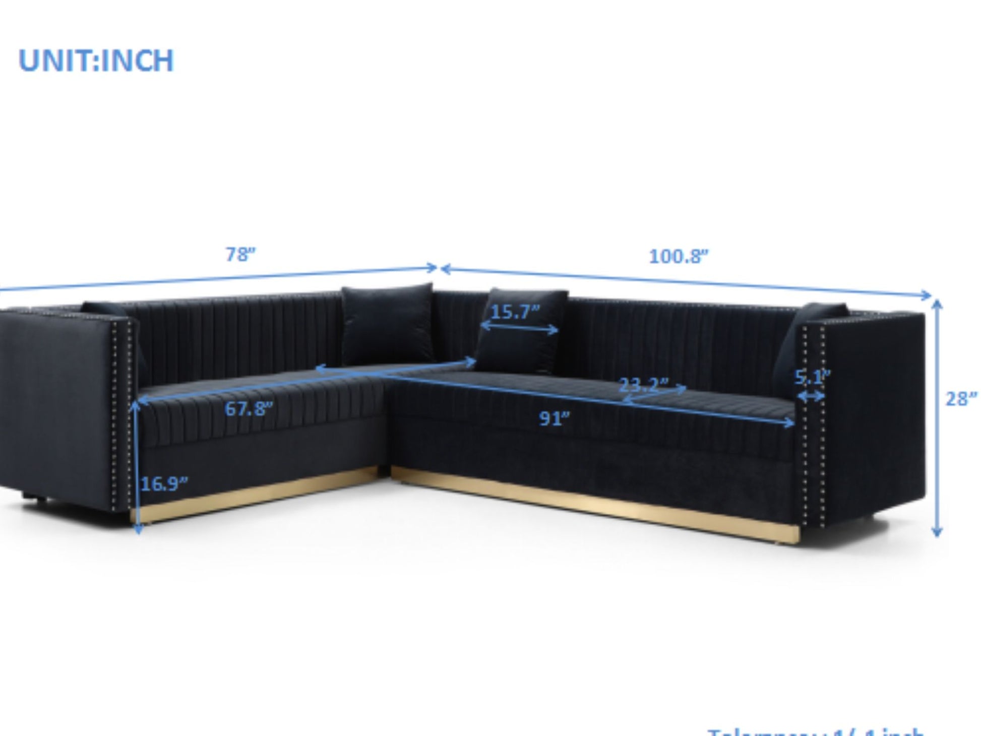 Contemporary Vertical Channel Tufted Velvet Sectional Sofa For Living Room With 4 Pillows - Black