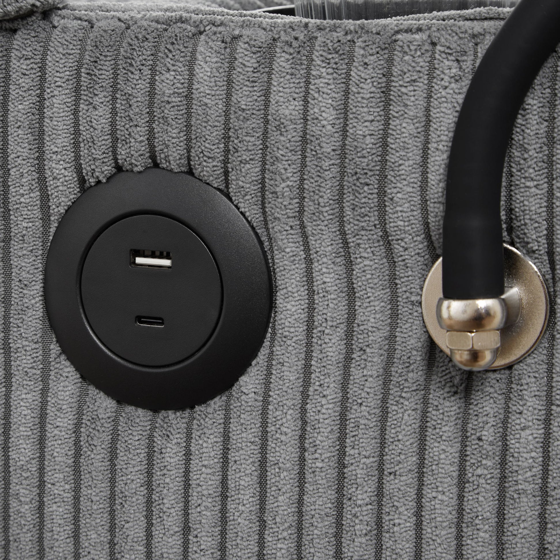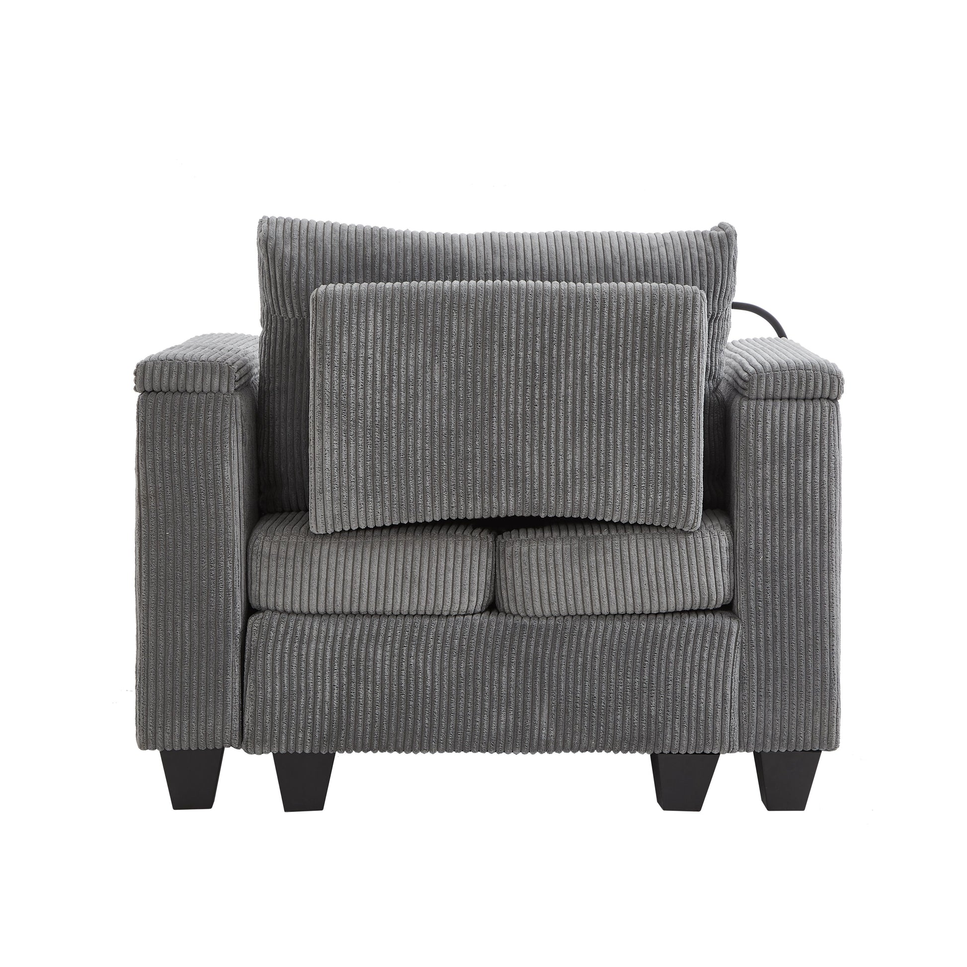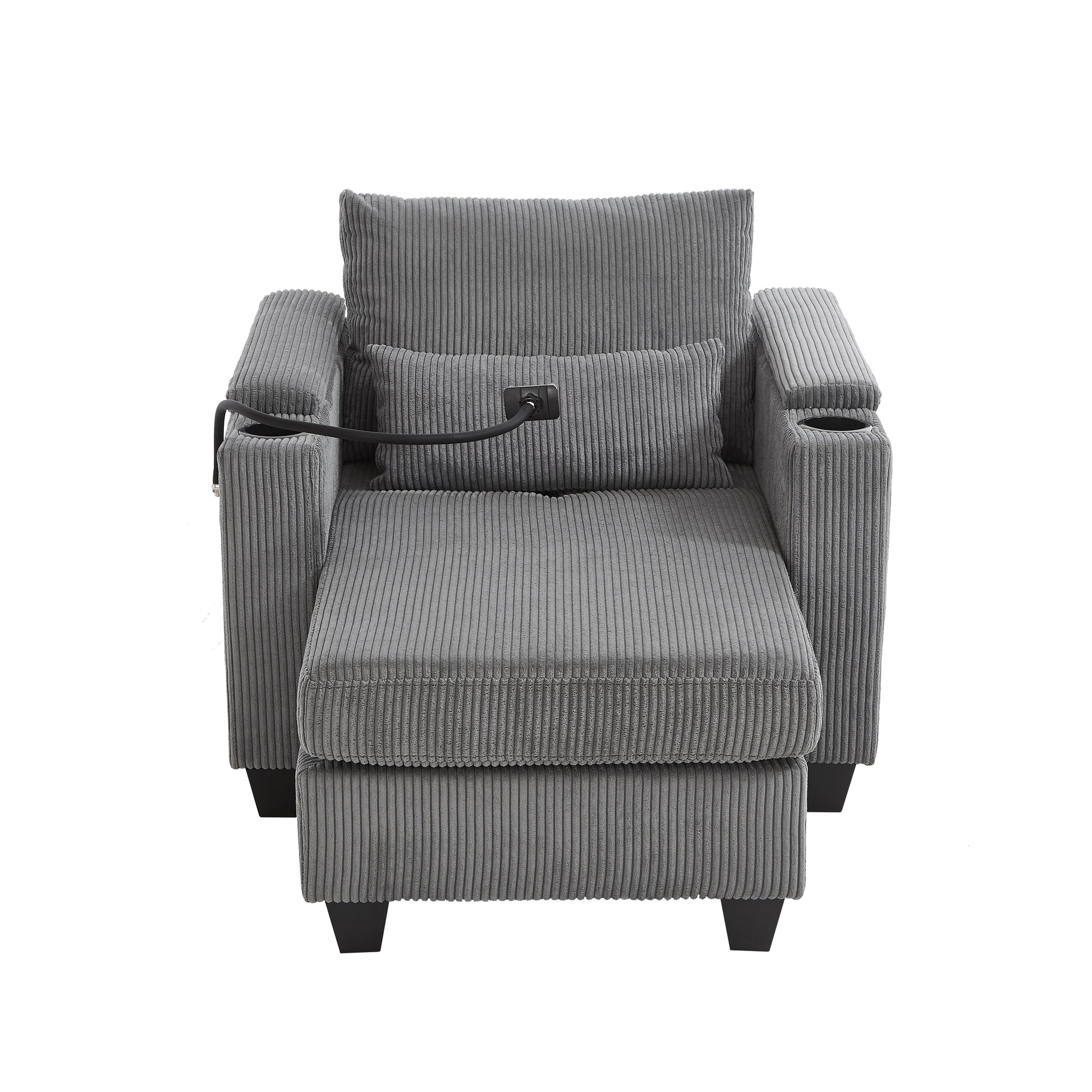 Convertible Chaise Lounge Sofa Chair Corduroy Sleeper With USB Ports, Cup Holders, Storage - Gray