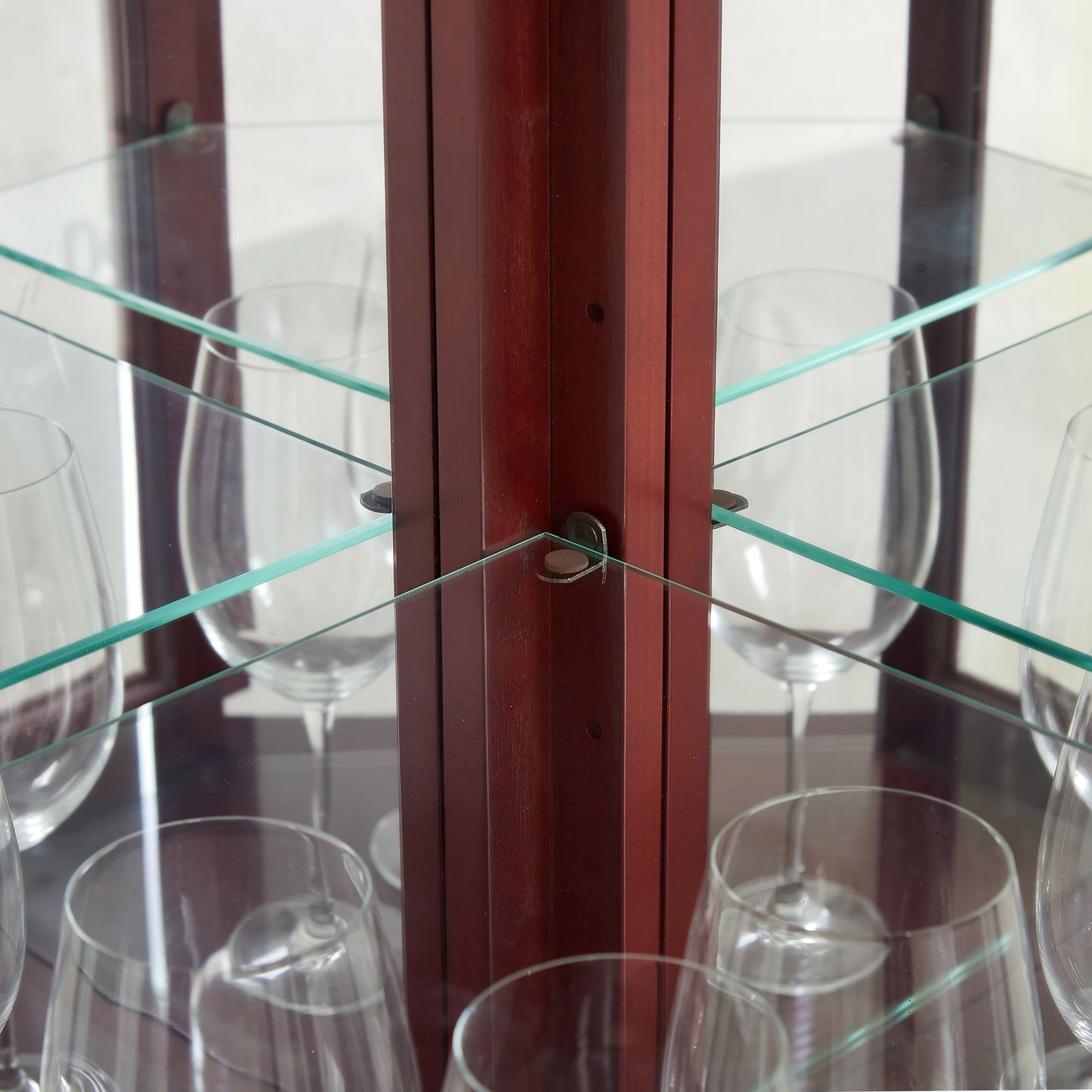 - Durable & Safe Construction: Crafted from high-quality engineered wood with a natural walnut finish, featuring wood-framed tempered glass doors for a secure, dust-free display; Anti-dumping belts ensure stability.