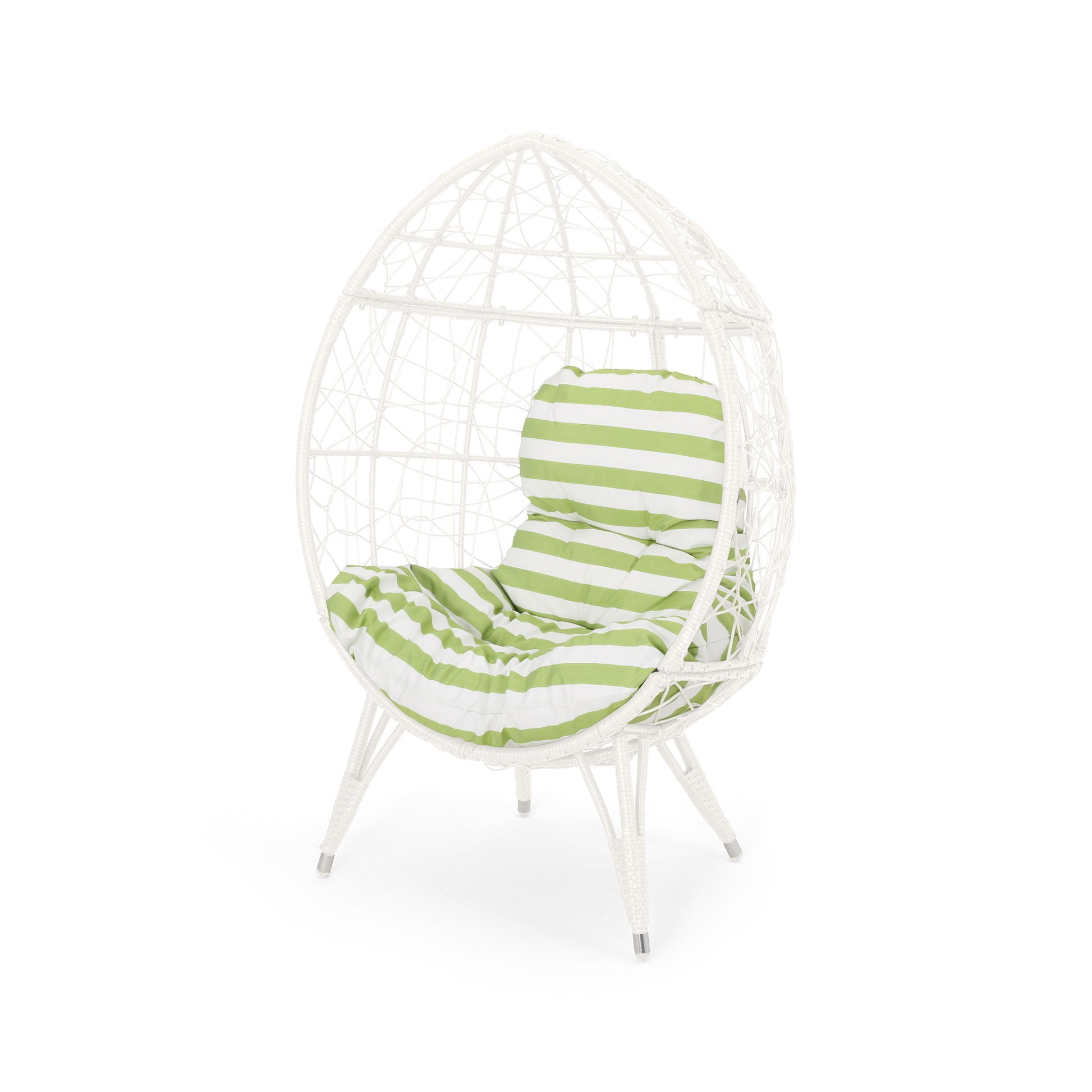 Cosmos - Round Hammered Iron Teardrop Chair - White / Green