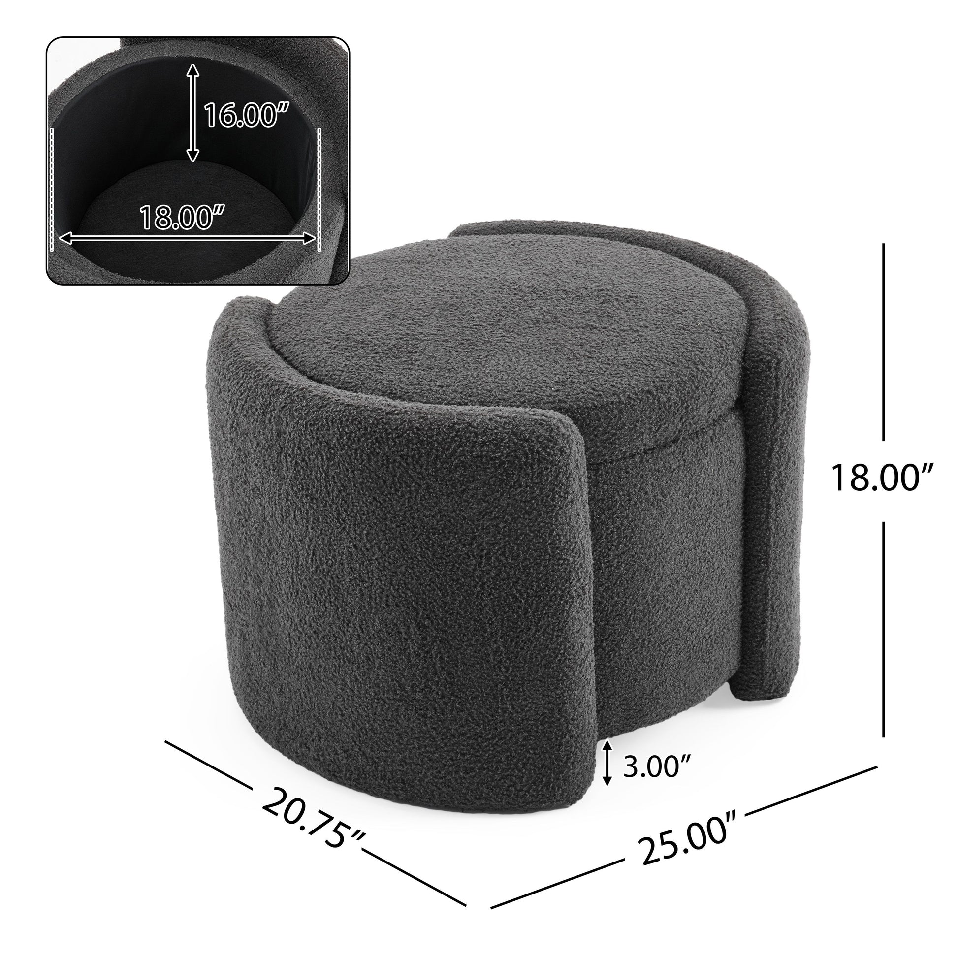 Cozy Boucle Storage Ottoman: Stylish Comfort With Hidden Storage - Gray