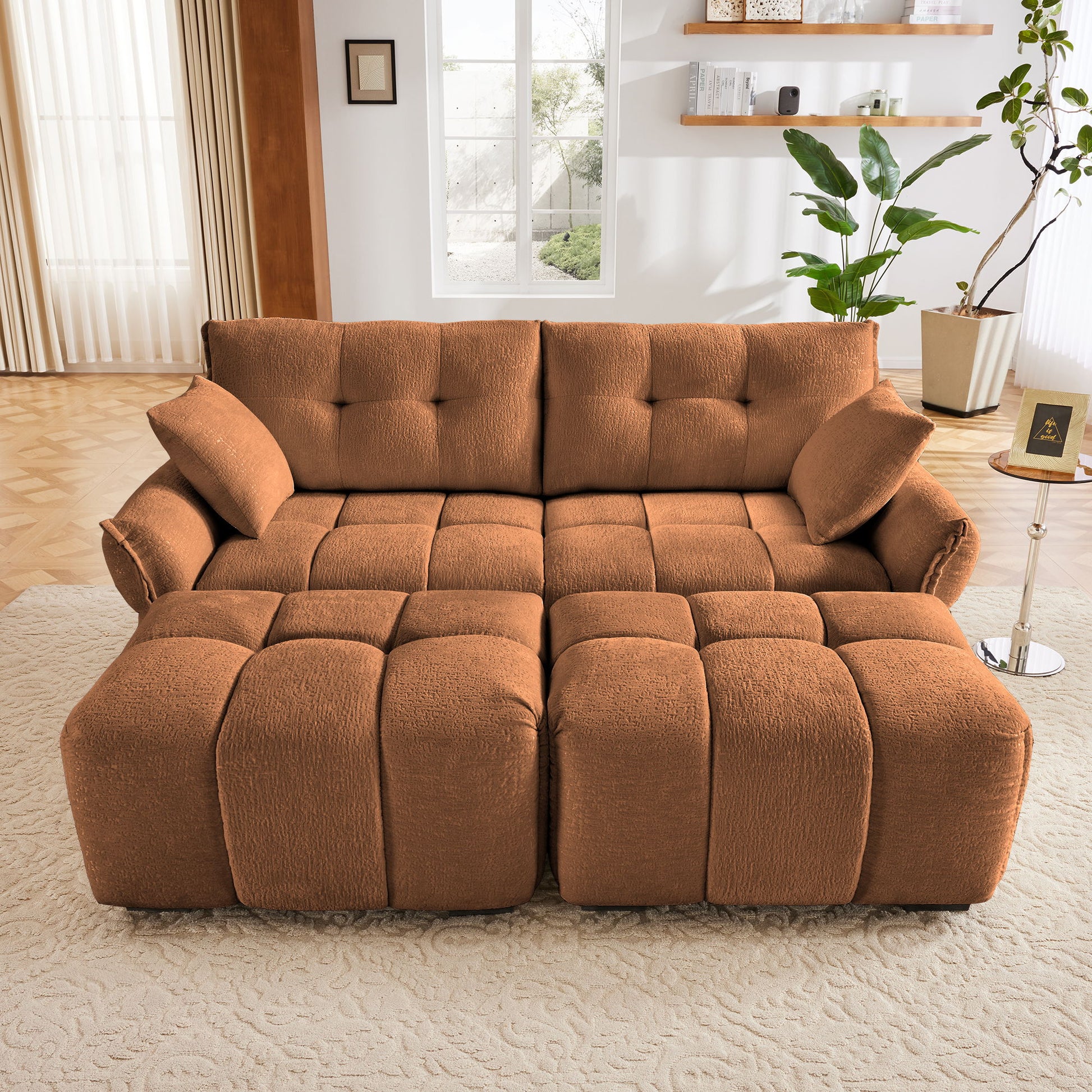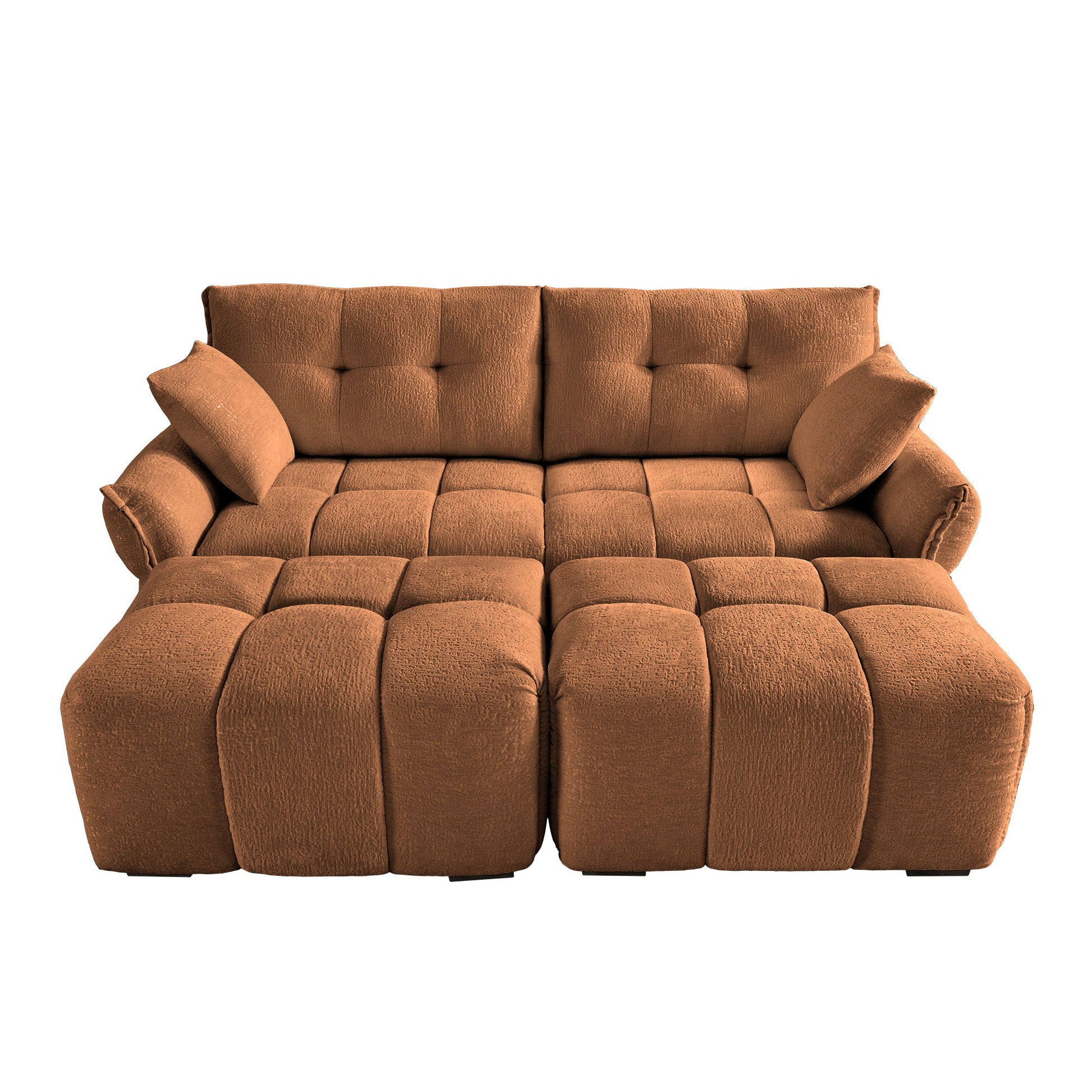 Cozy Plush 2 Seater Sofa Set With Ottomans And Throw Pillows - Burnt Orange
