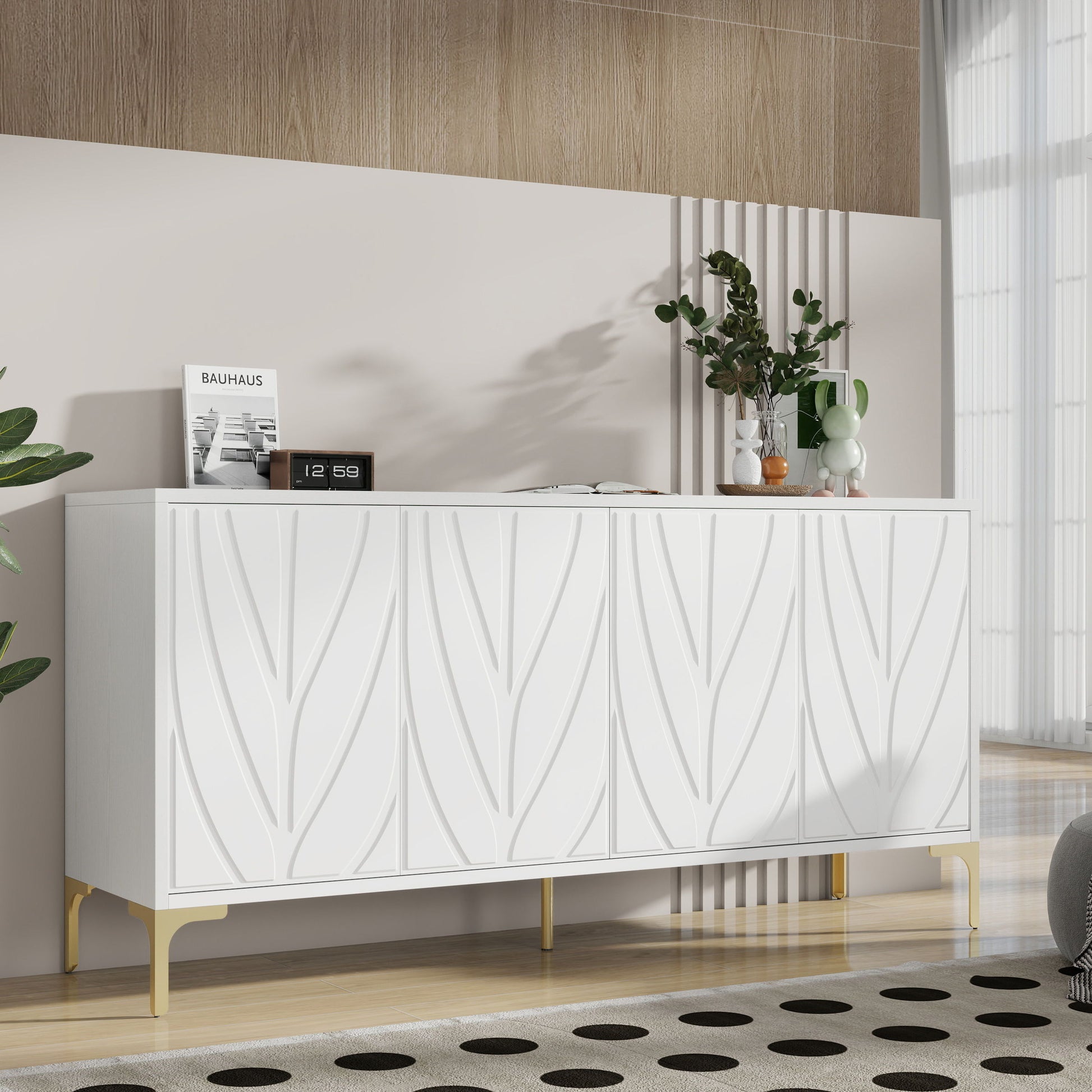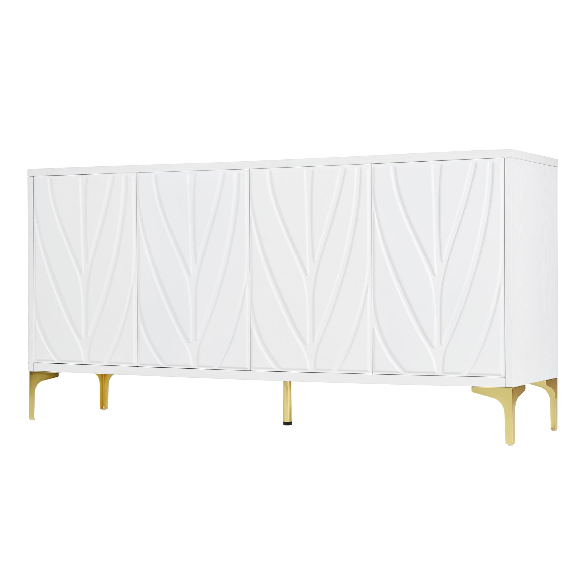 Creative Carved 4 Door Sideboard With Handleless Press To Open Design - White