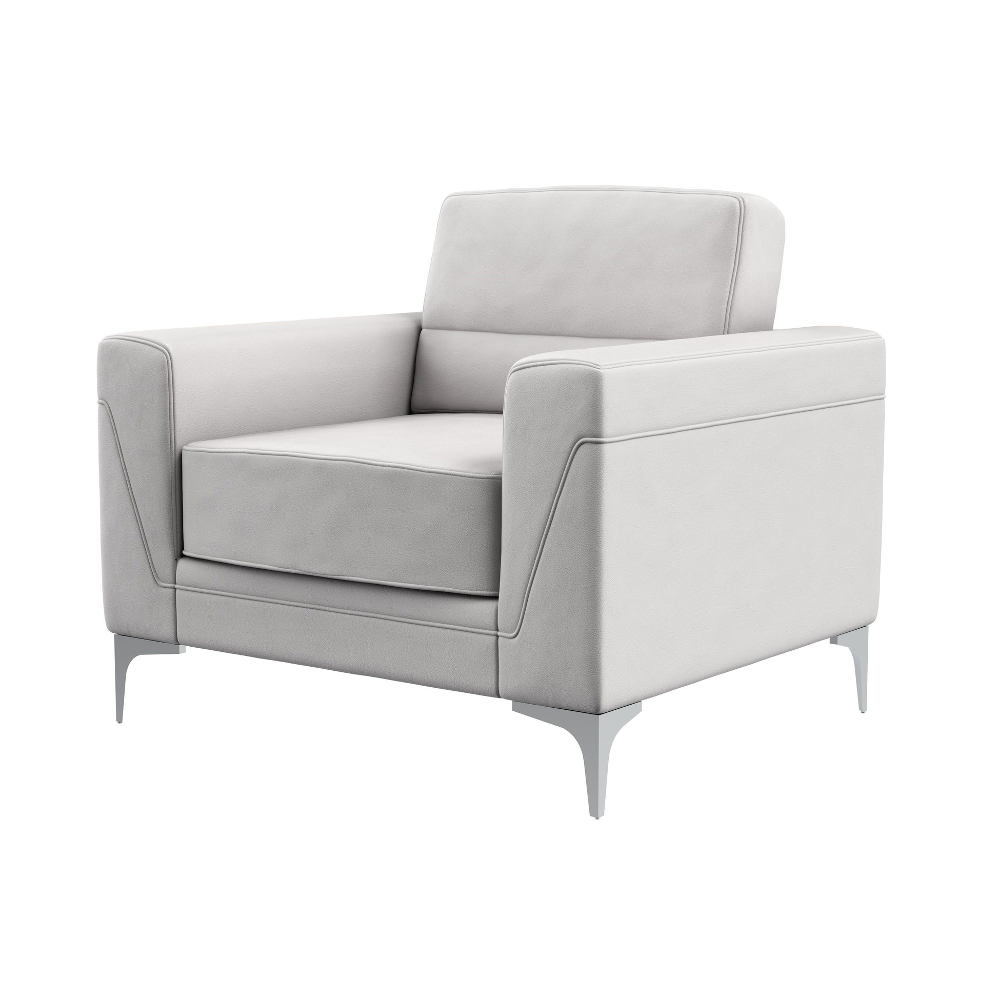 - Design Features: The CRETA LIGHT GREY CHAIR features a tight seat cushion and square arms, offering a modern and sleek design. The light gray PVC upholstery adds a contemporary touch, making it versatile for various decor styles.