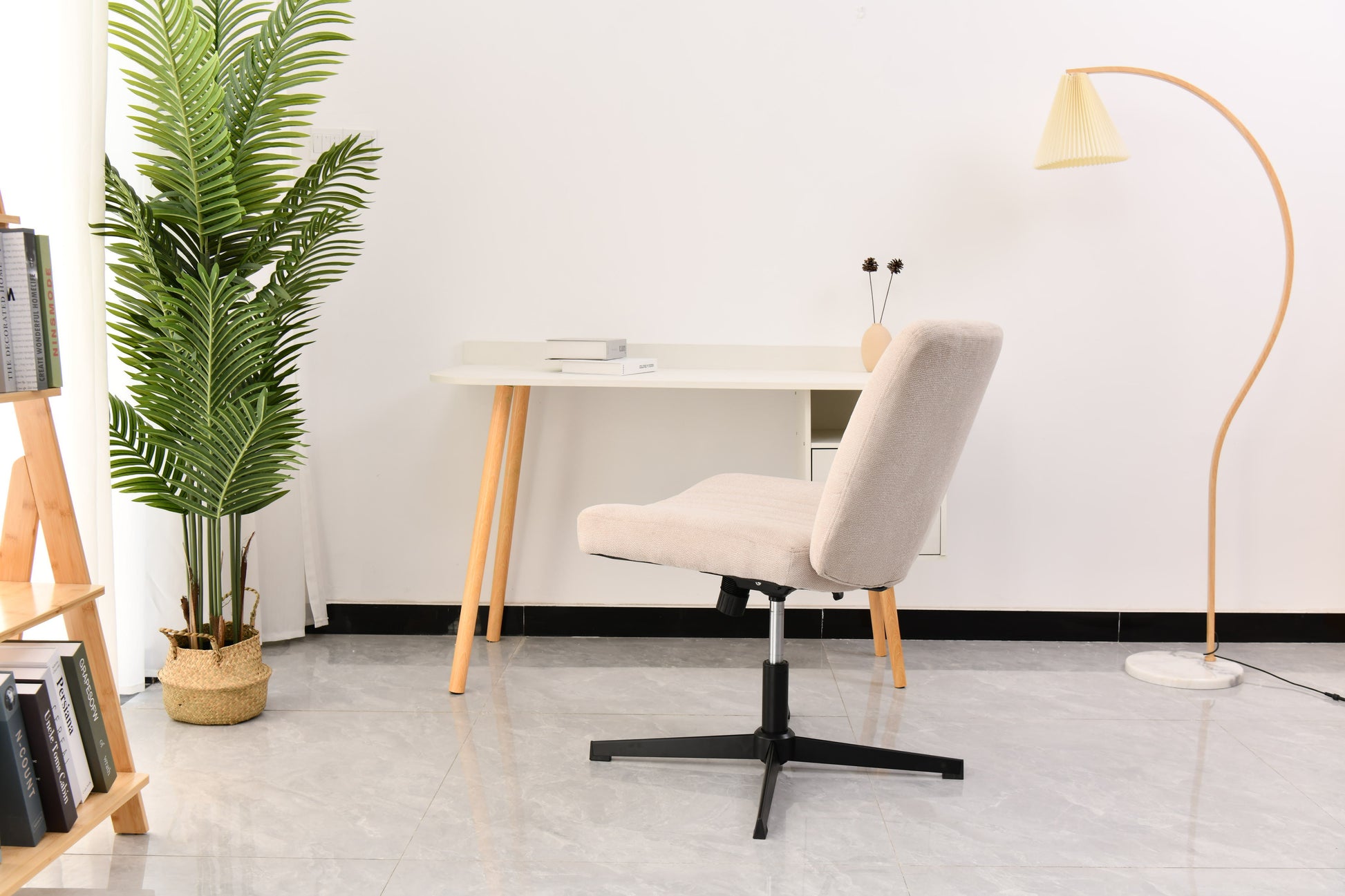 Cross Legged Office Chair, Wide Comfty Desk Chair, Vanity Home Chair No Wheels Armless Computer Task Chair, Swivel And Height Adjustable - Beige
