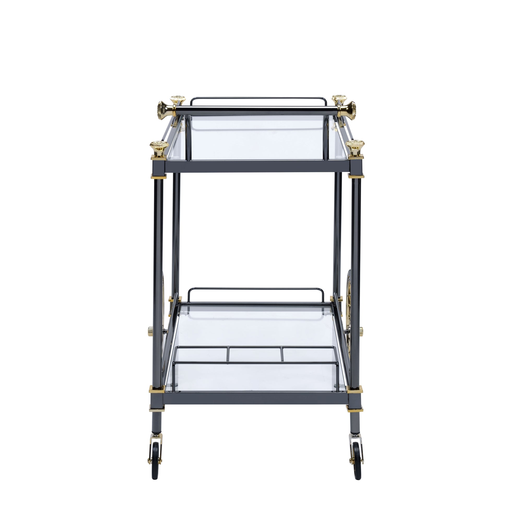 Cyrus - Clear Glass Serving Cart - Black / Gold