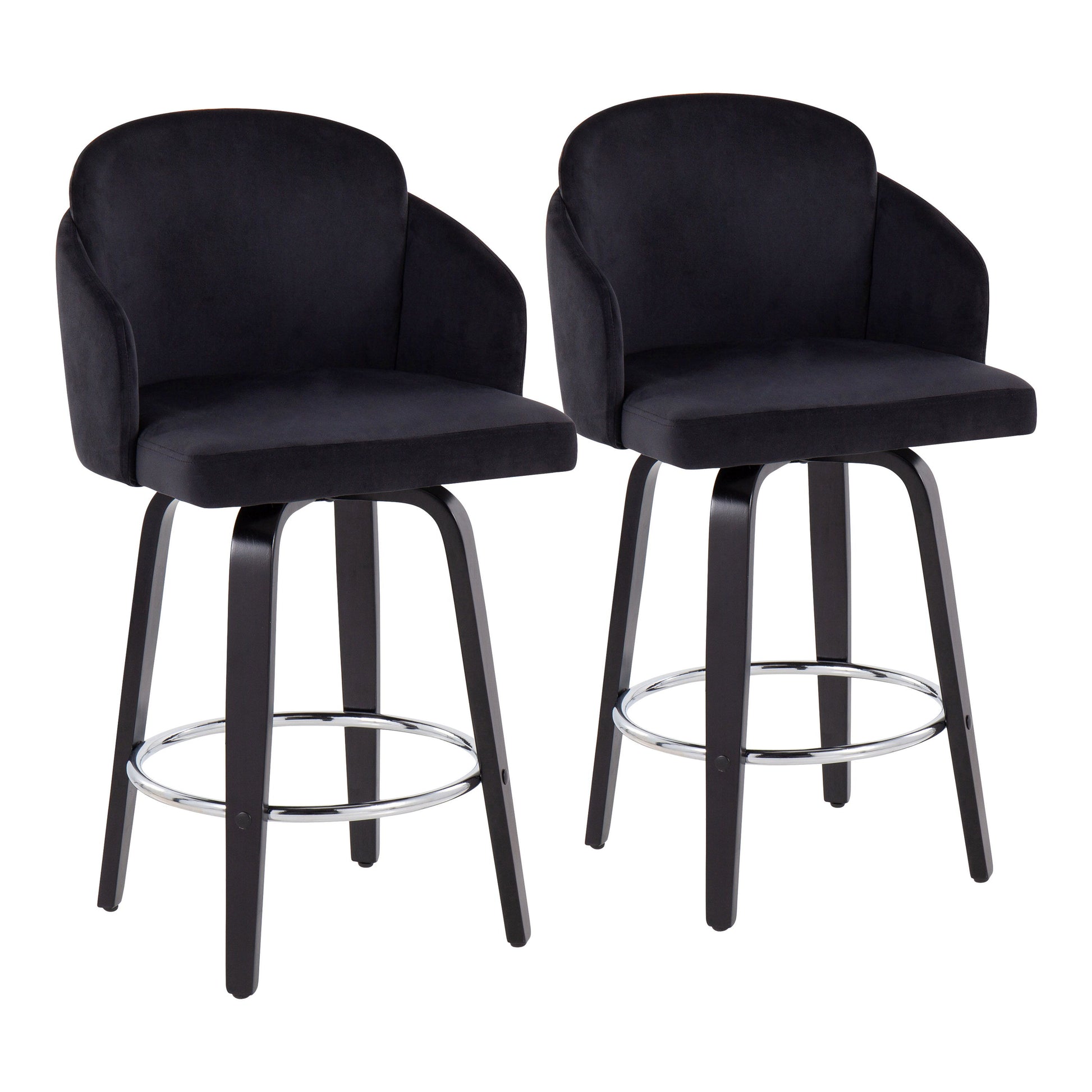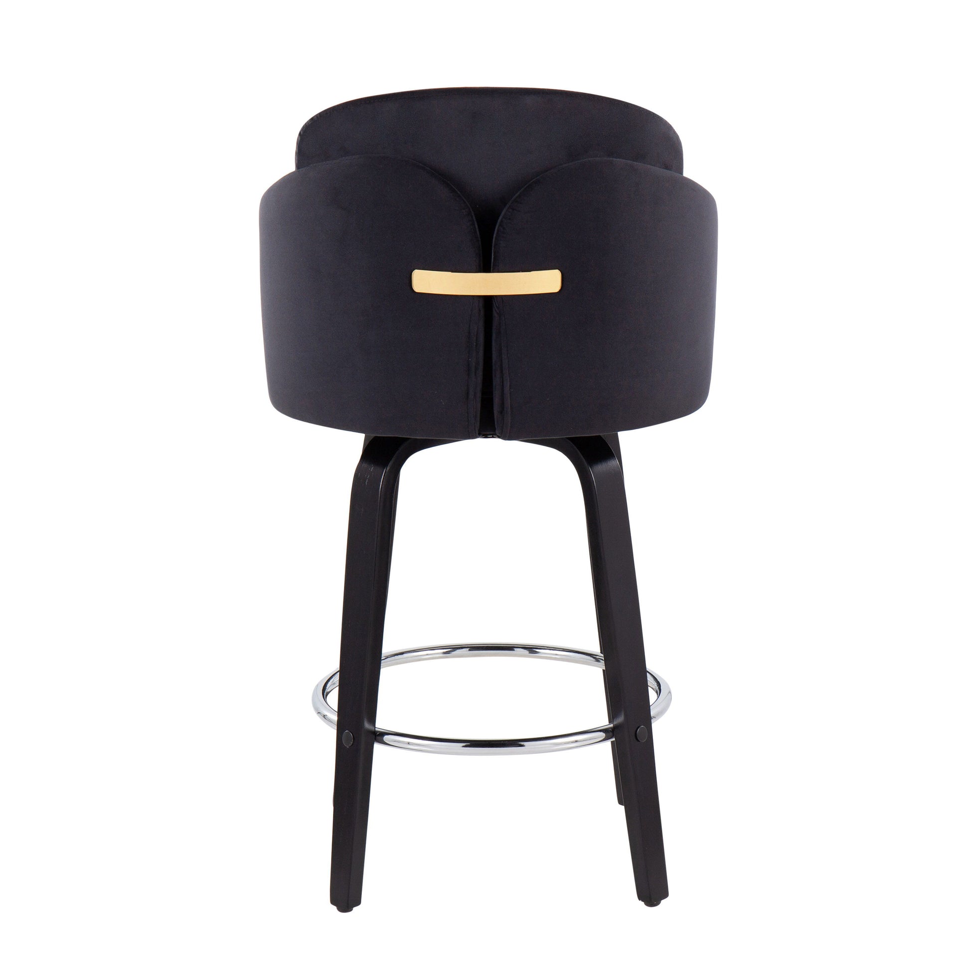 Dahlia - Contemporary Counter Stool Round Chrome Footrest (Set of 2) - Black / Gold