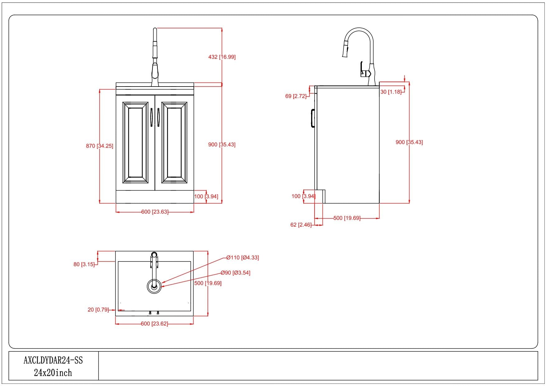 - DIMENSIONS: Cabinet: 24" W 34.25" H x 19.7" D Sink Depth: 10 inches
