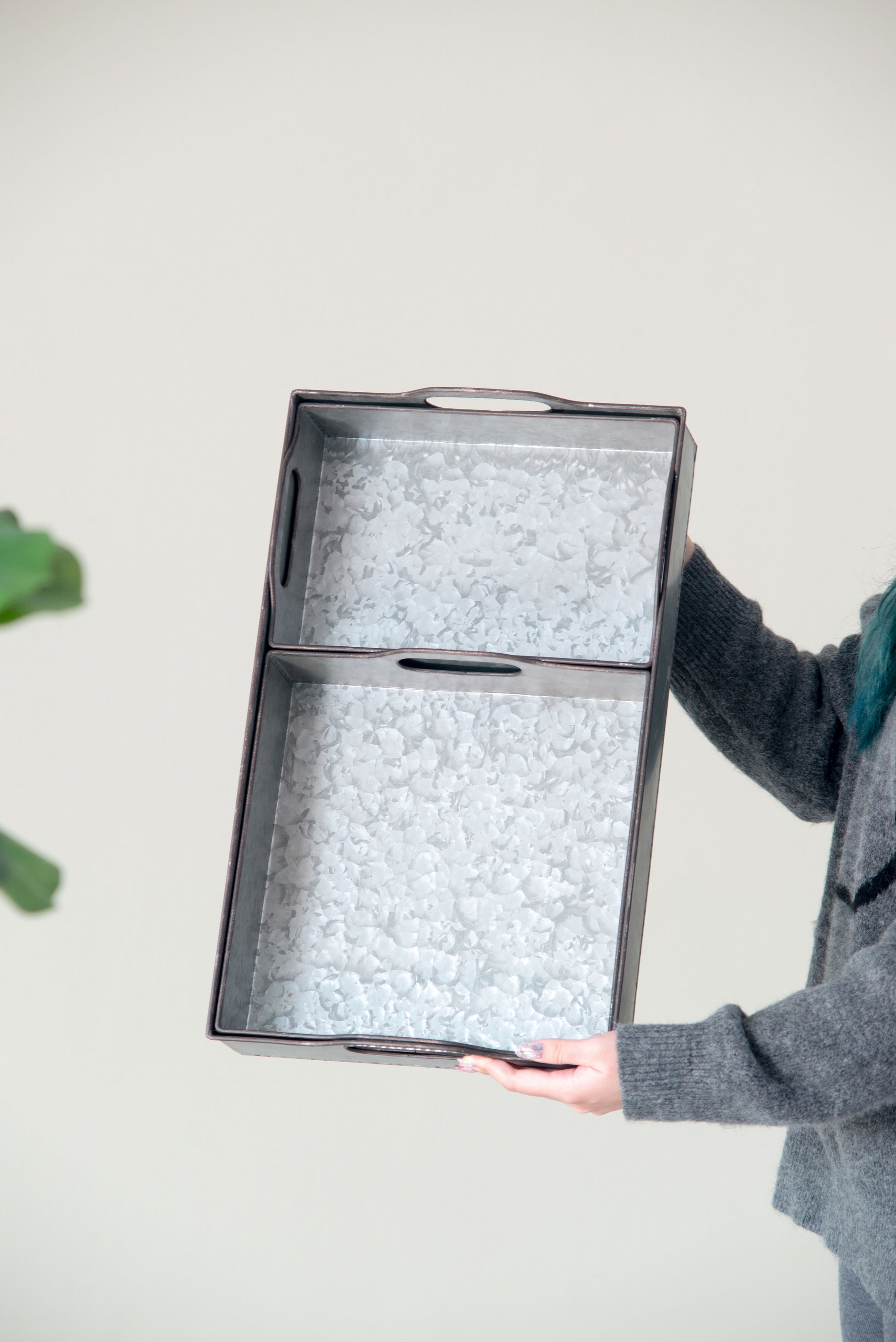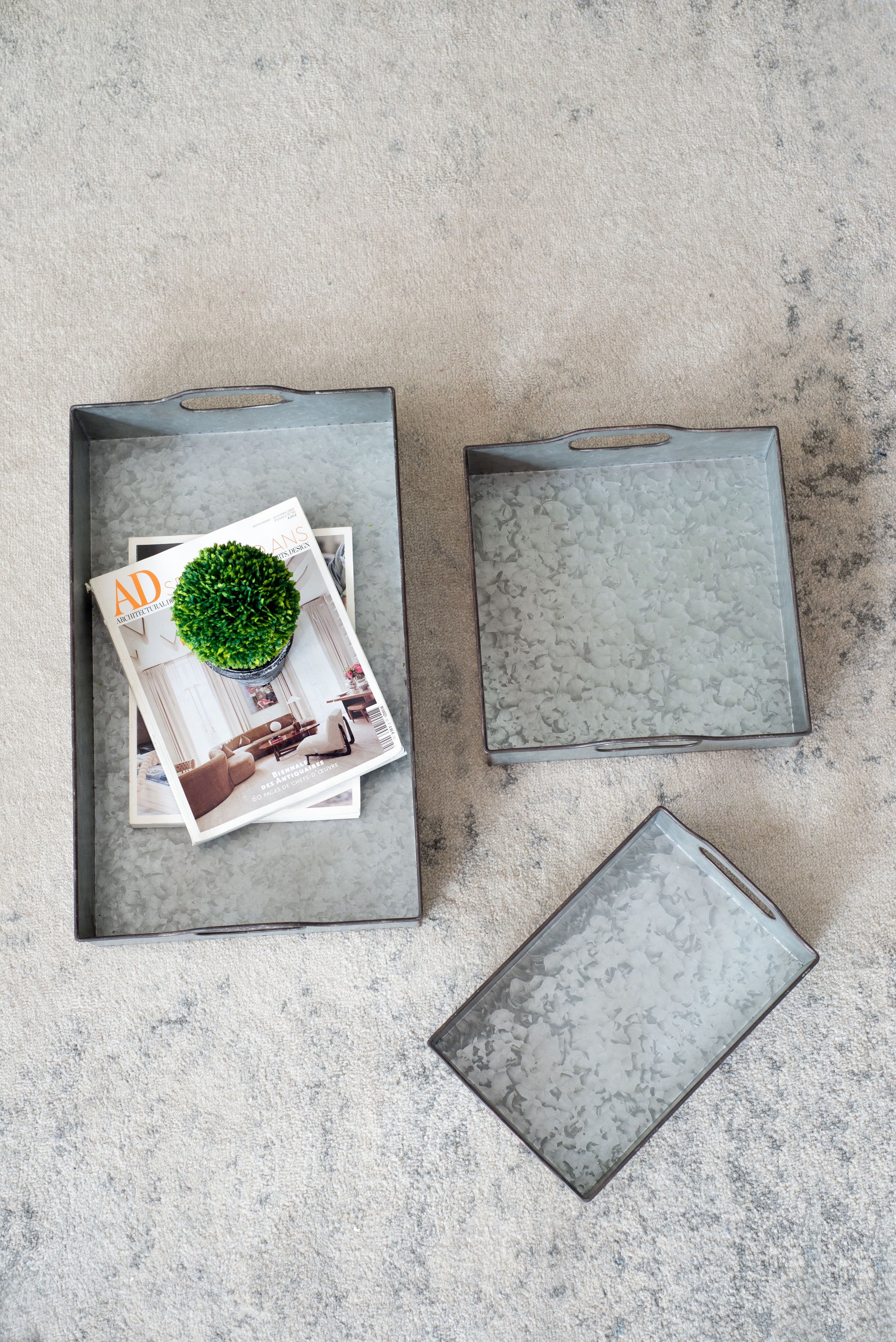 Decorative Galvanized Nesting Trays (Set of 3) - Gray