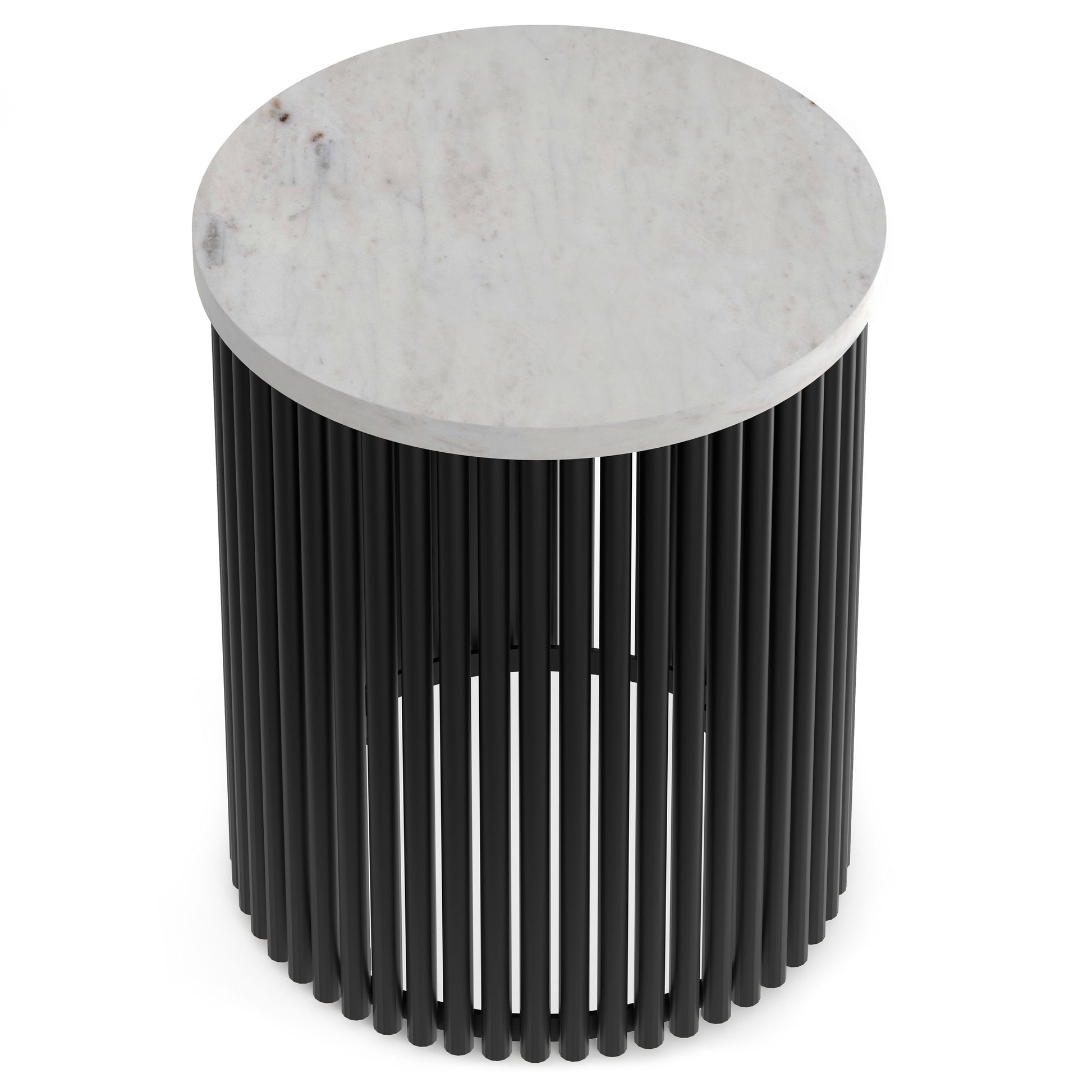 - Hand finished with a Natural Marble and a black matte powder coated metal