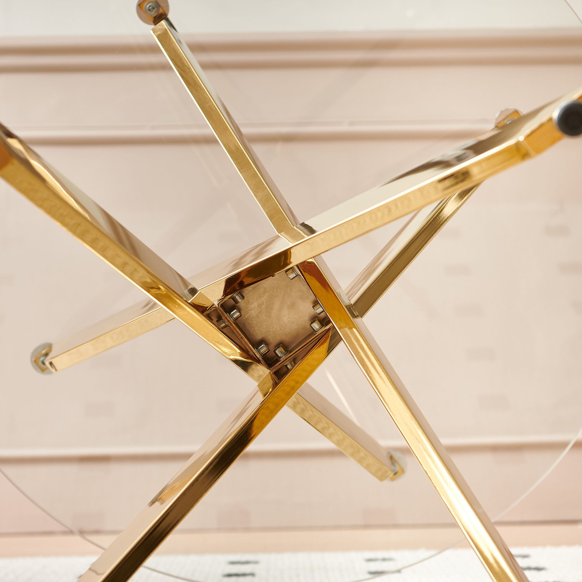 Dining Table With Cross Metal Leg And Glass, Modern Space Saving Kitchen Table For Living Room - Golden