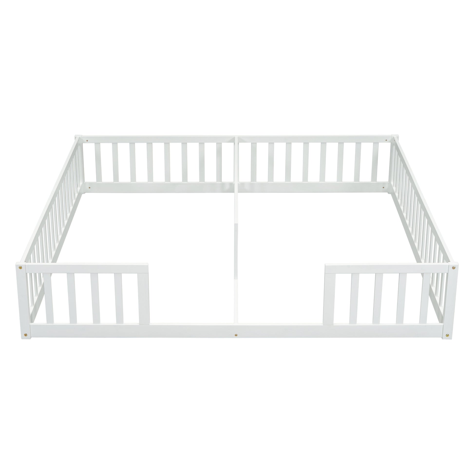 Double Twin Floor Bed With Fence, Guardrails, Without Door - White