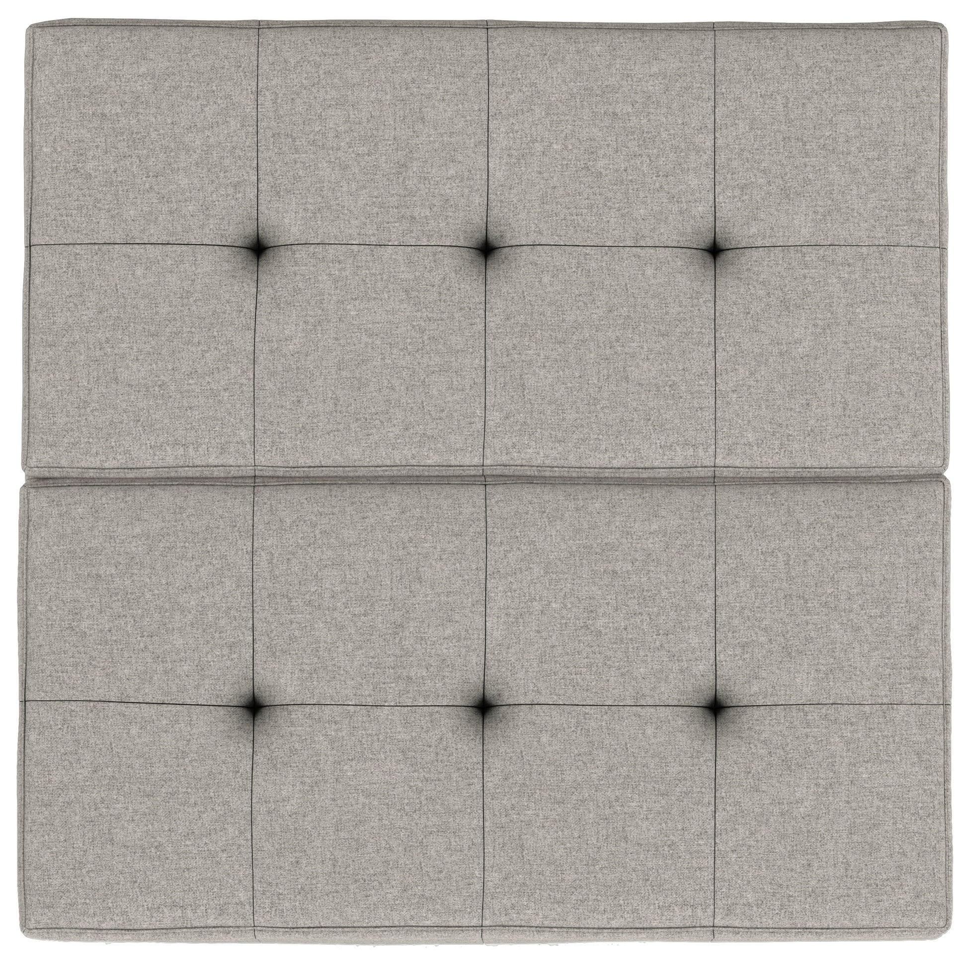 - Upholstered with a durable Cloud Grey Linen-Style fabric with square tufting.