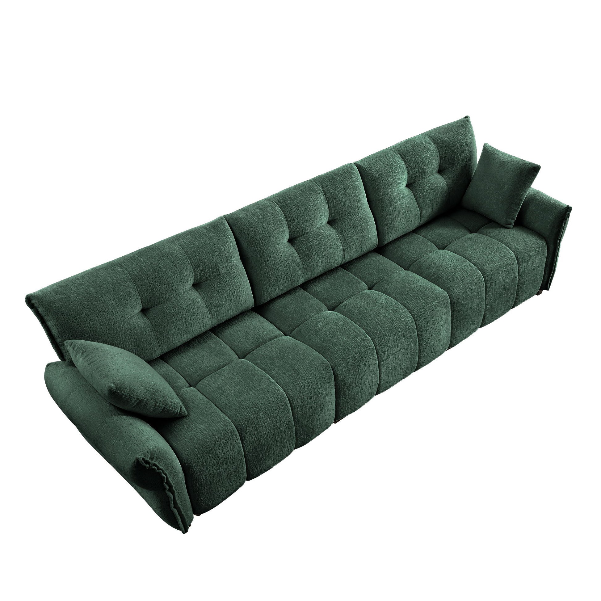 Elegant 3 Seater Sofa Set & Pillows Frame, High Rebound Cushions - Textured Green