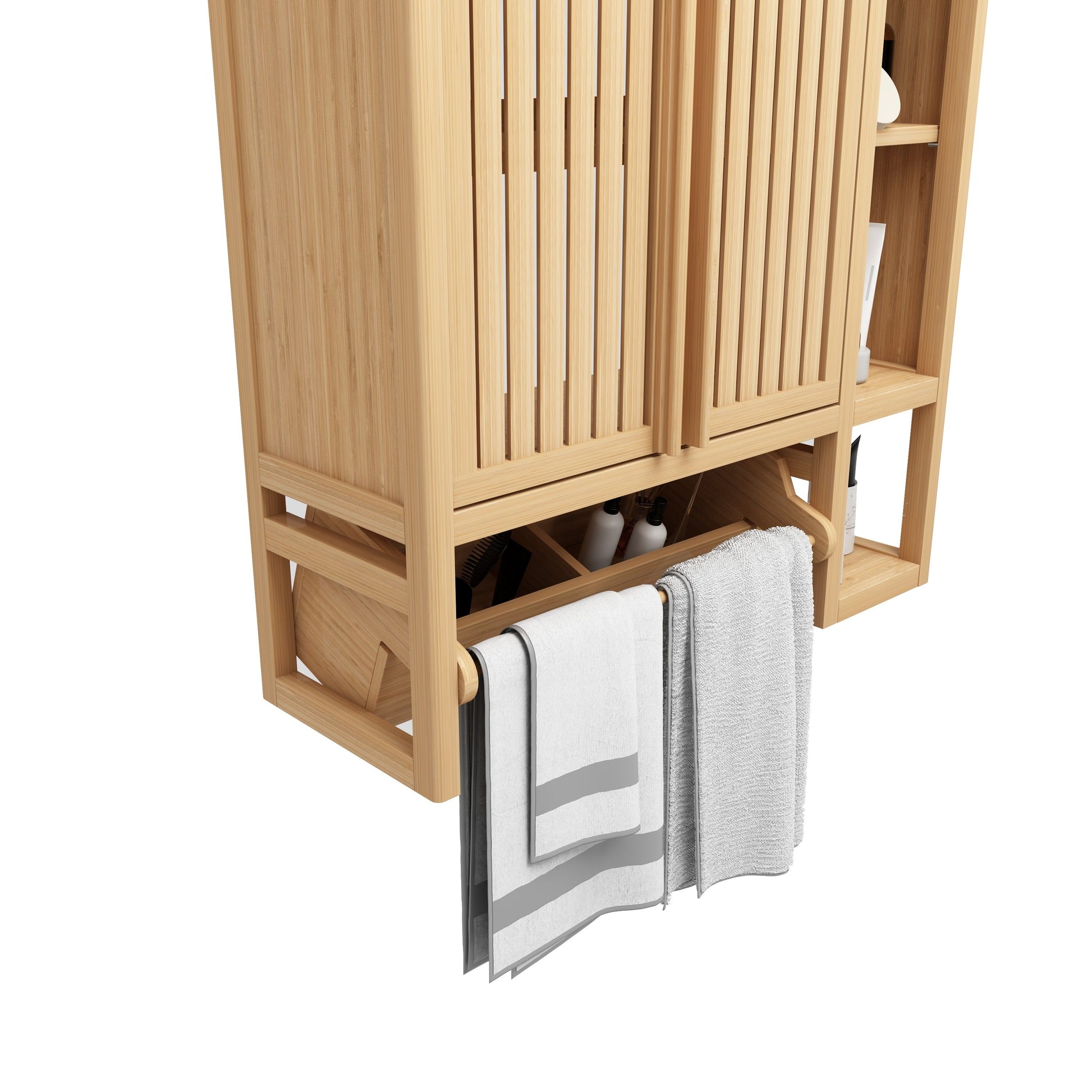 Elegant Bamboo Wall Mounted Bathroom Cabinet With Storage For Toiletries And Towels - Neutral