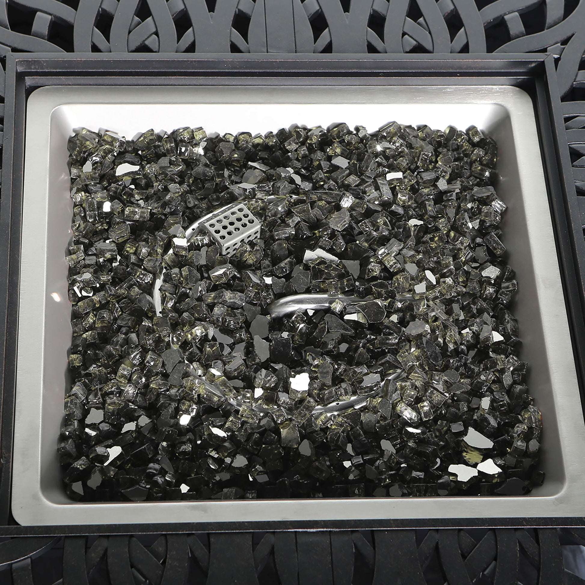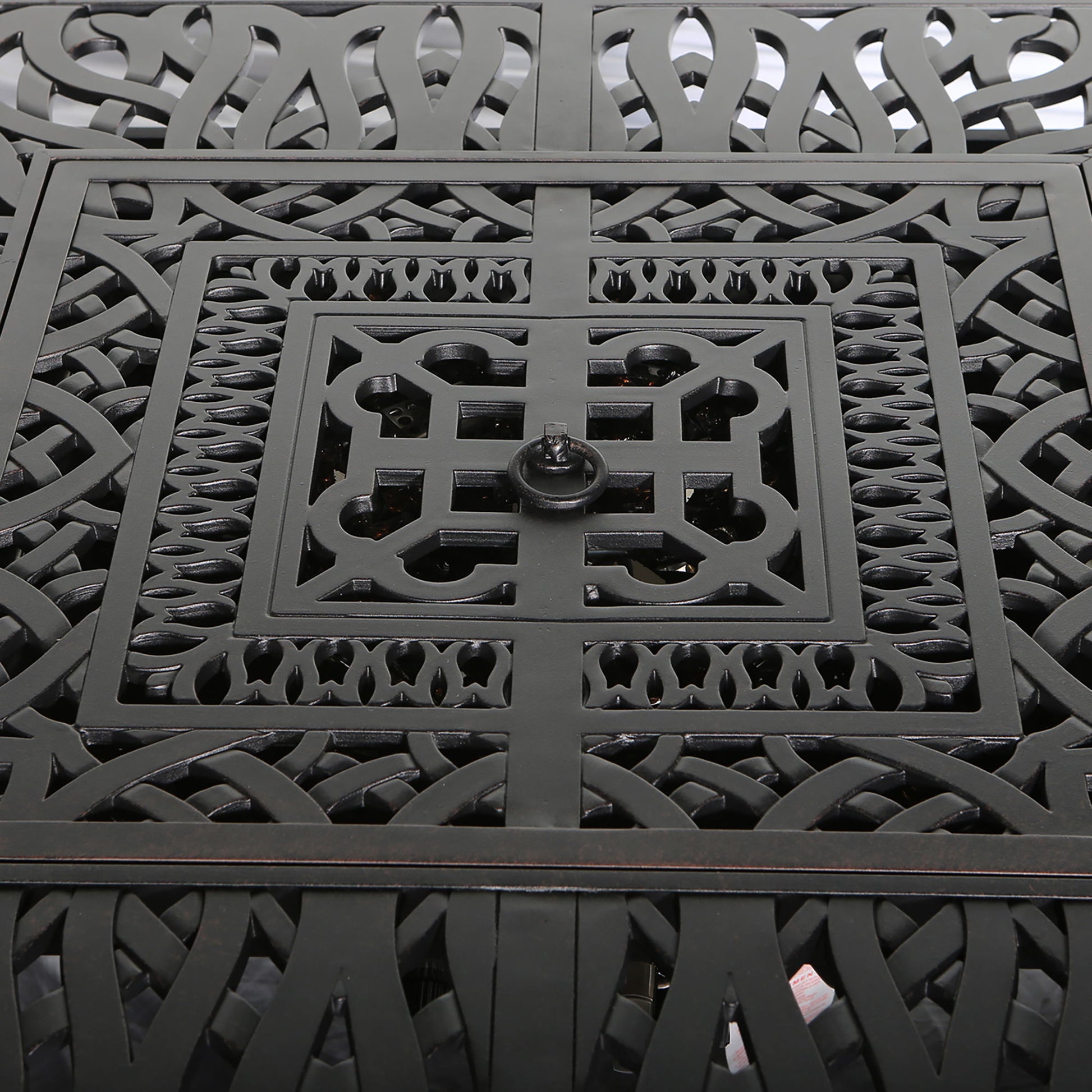Elegant Cast Aluminum Square Fire Table With Fire Glass And Cover - Antique Bronze