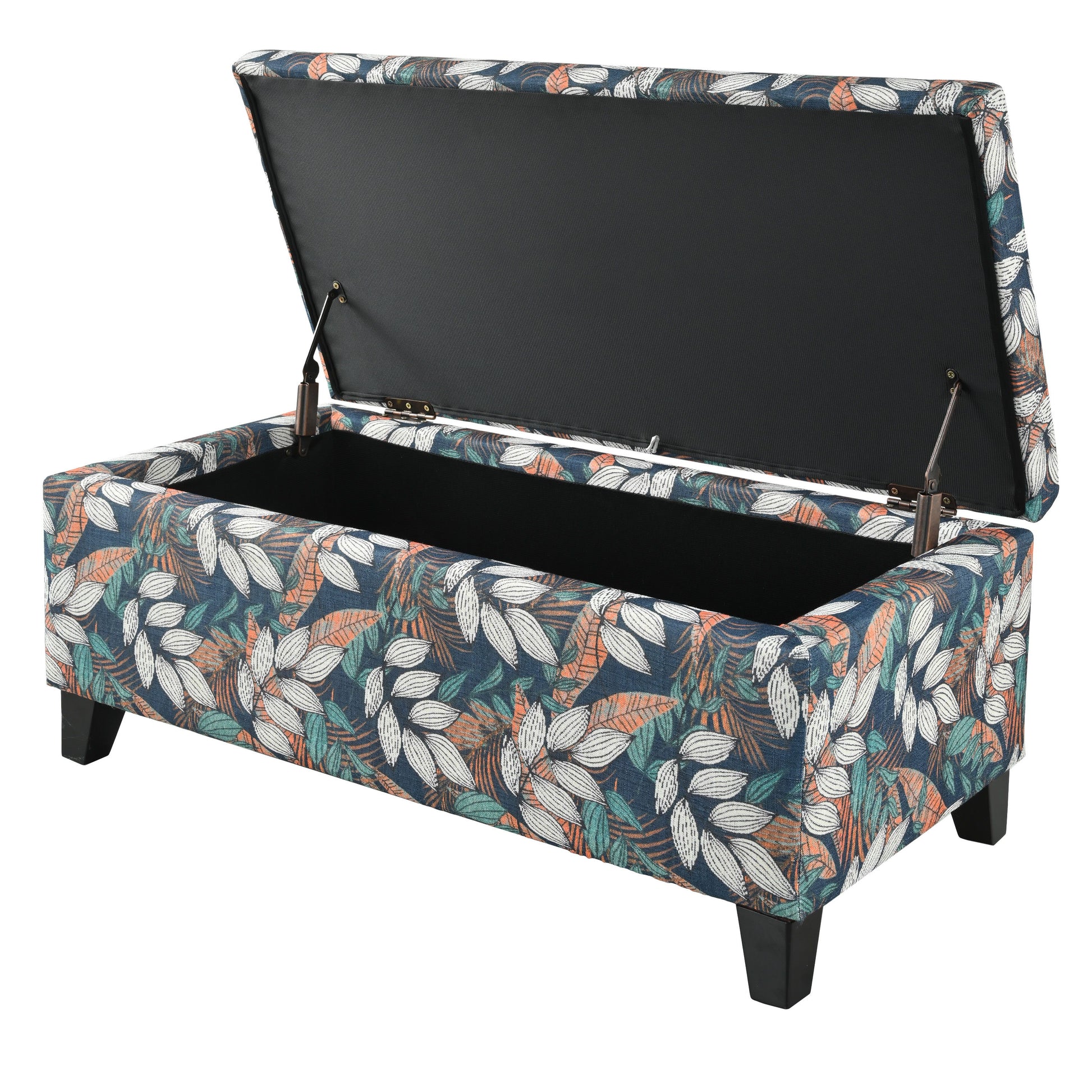 Elegant Flower Pattern Storage Ottoman With Soft Upholstery And Wood Frame - Flower