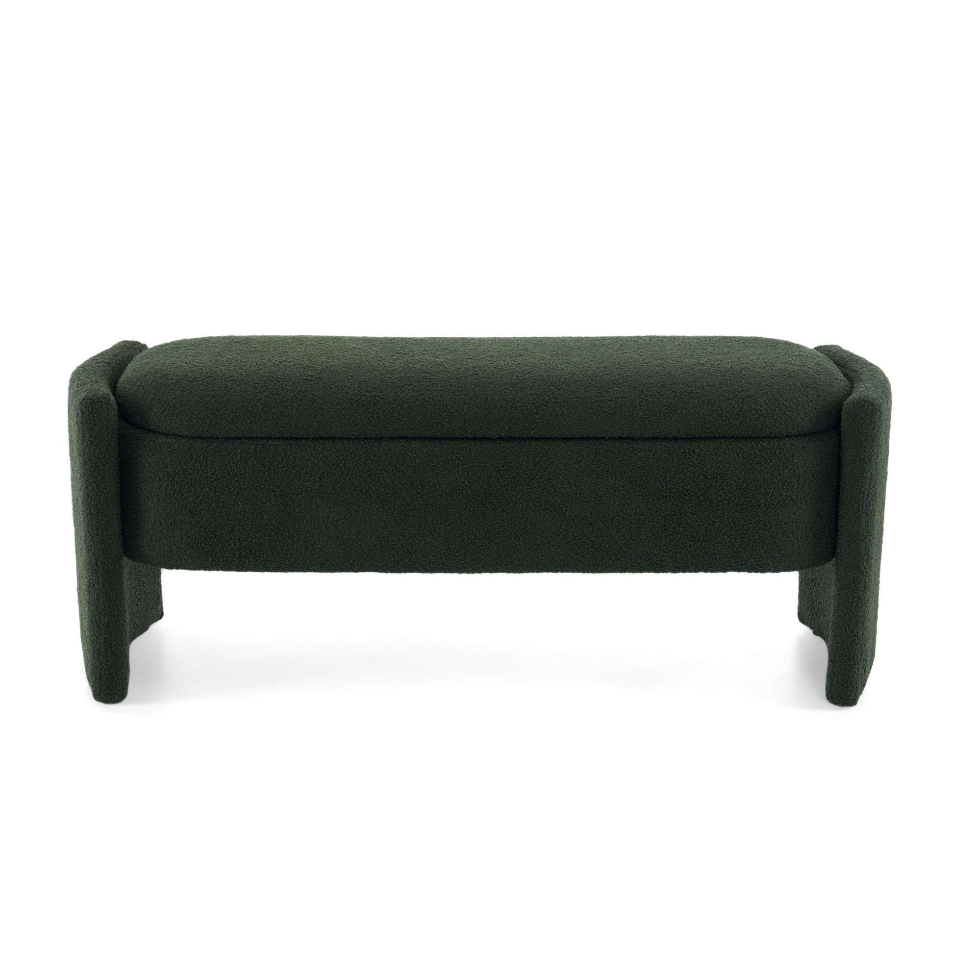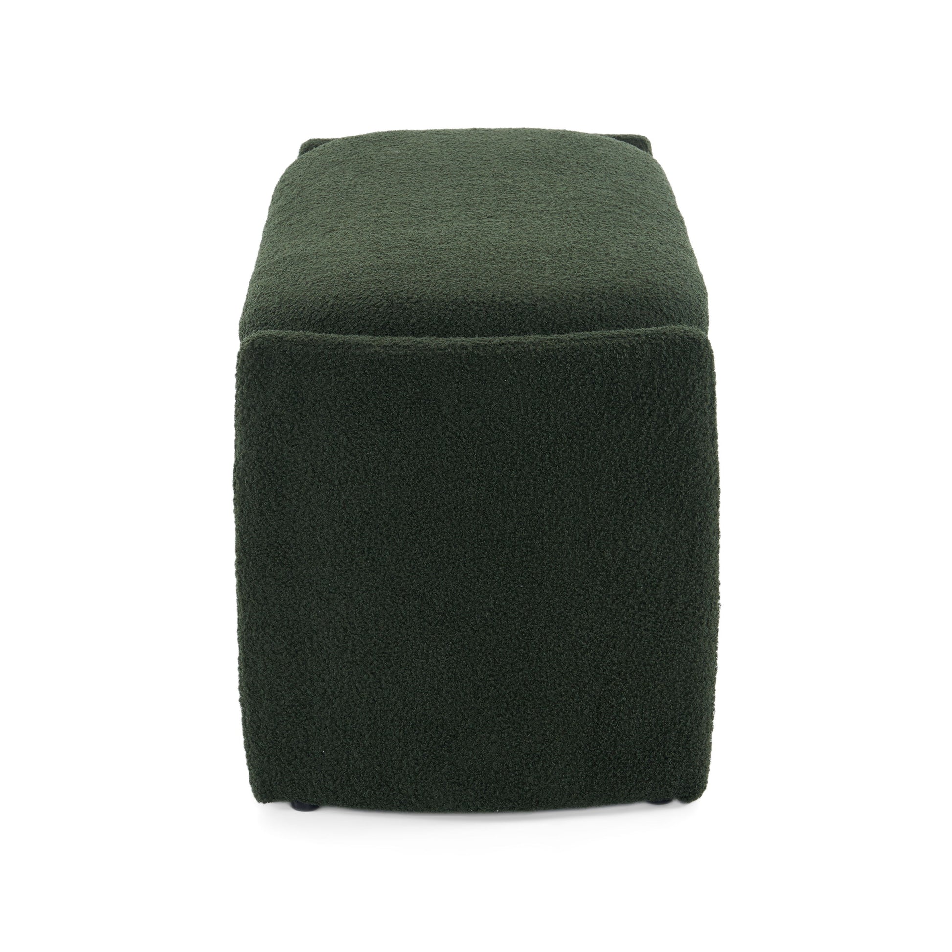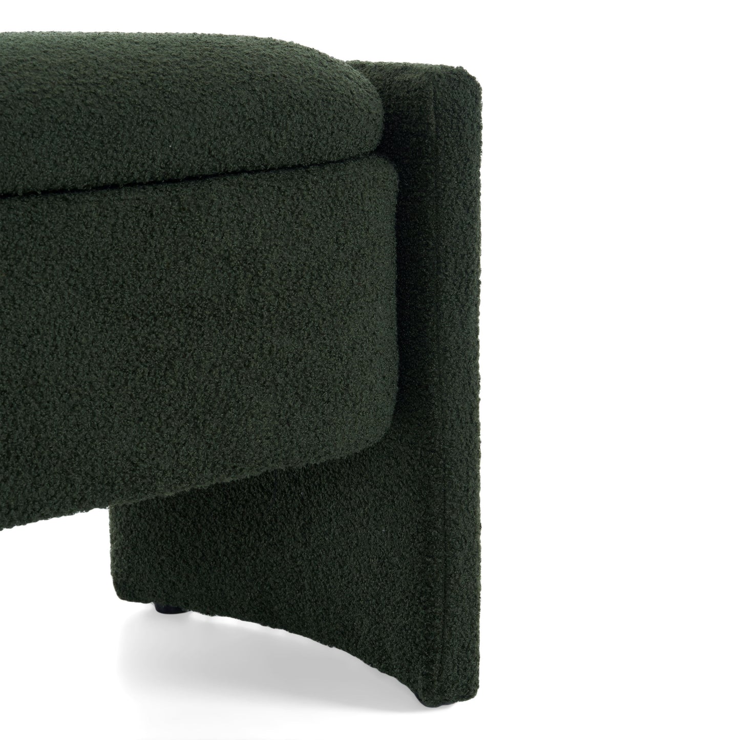 Elegant Long Shaped Storage Ottoman Bench, Boucle Material, Simple And Grand Design - Dark Green
